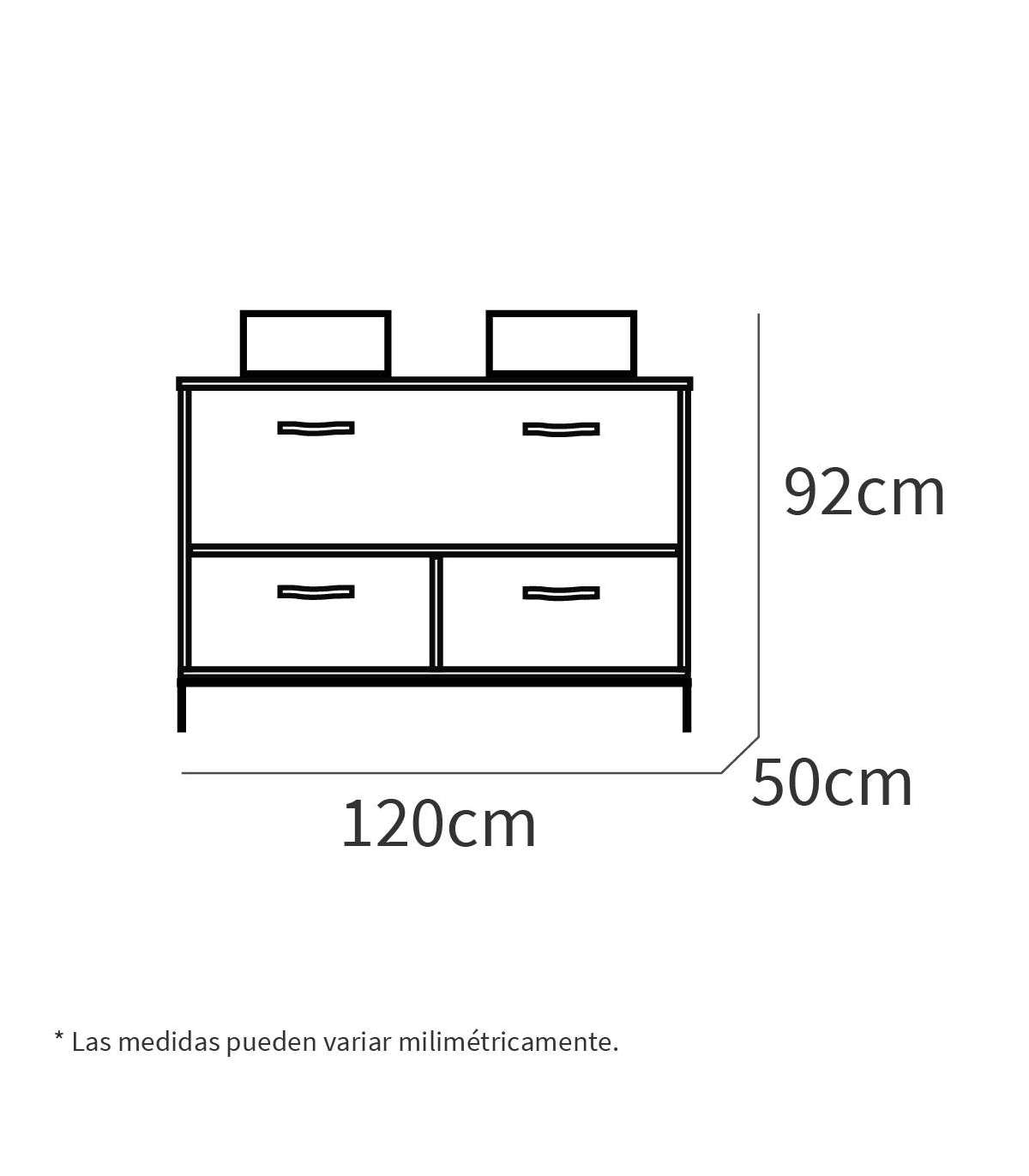 Medidas: 92 cm (alto) x 120 cm (largura) x 50 cm (Prof.)