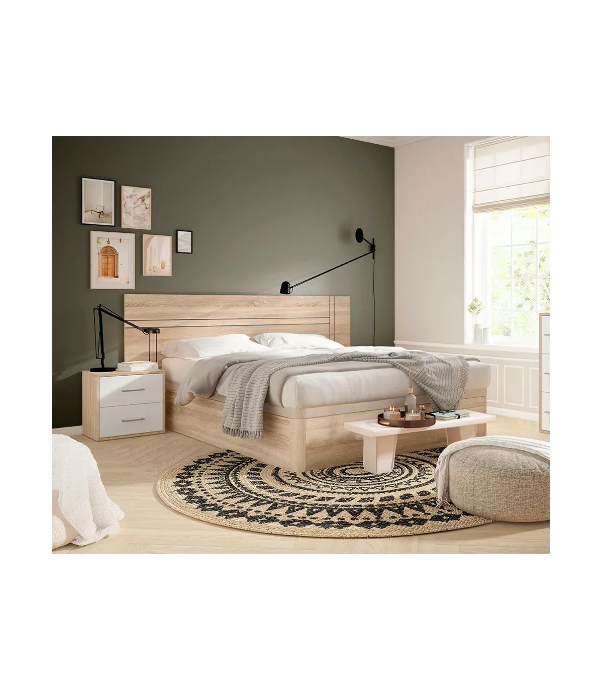 Auricular elegante + 2 tabelas Modelo Valverde para Quarto que dará um toque moderno ao seu quarto. Em carvalho e branco.