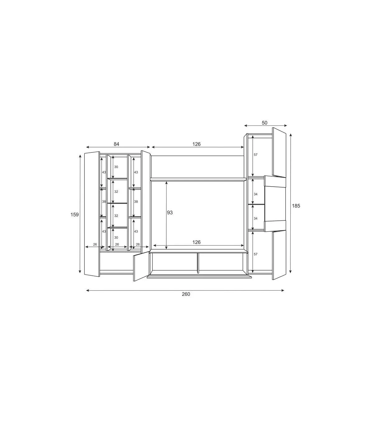• Composição completa: 185 cm (alta) x 260 cm (largura) x 42 cm (prof.)