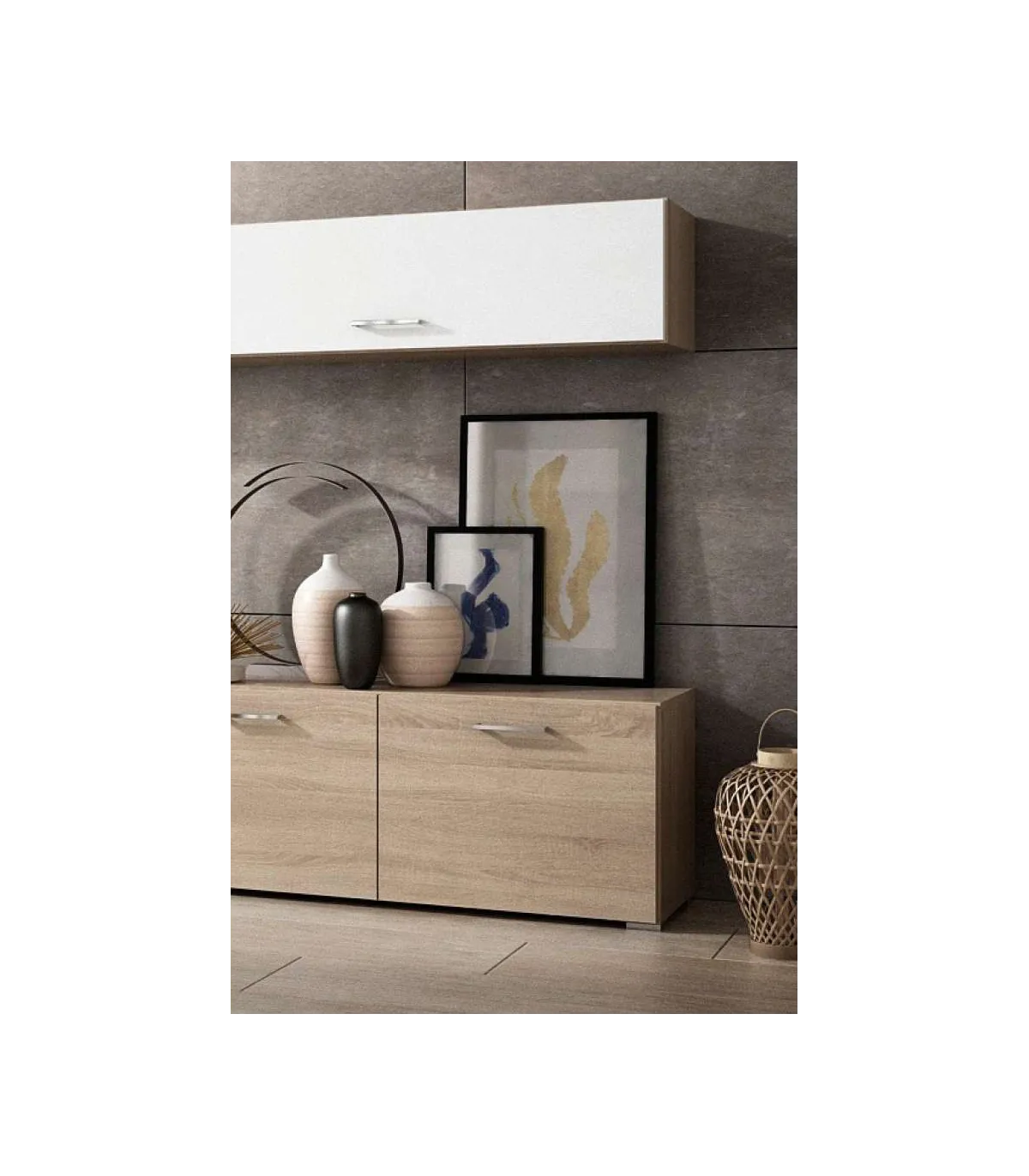 Largura total de 240 cm: 4 módulos (2 pendurados e 2 baixos) de 120 cm de largura cada.
