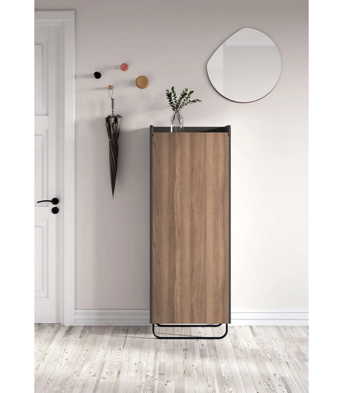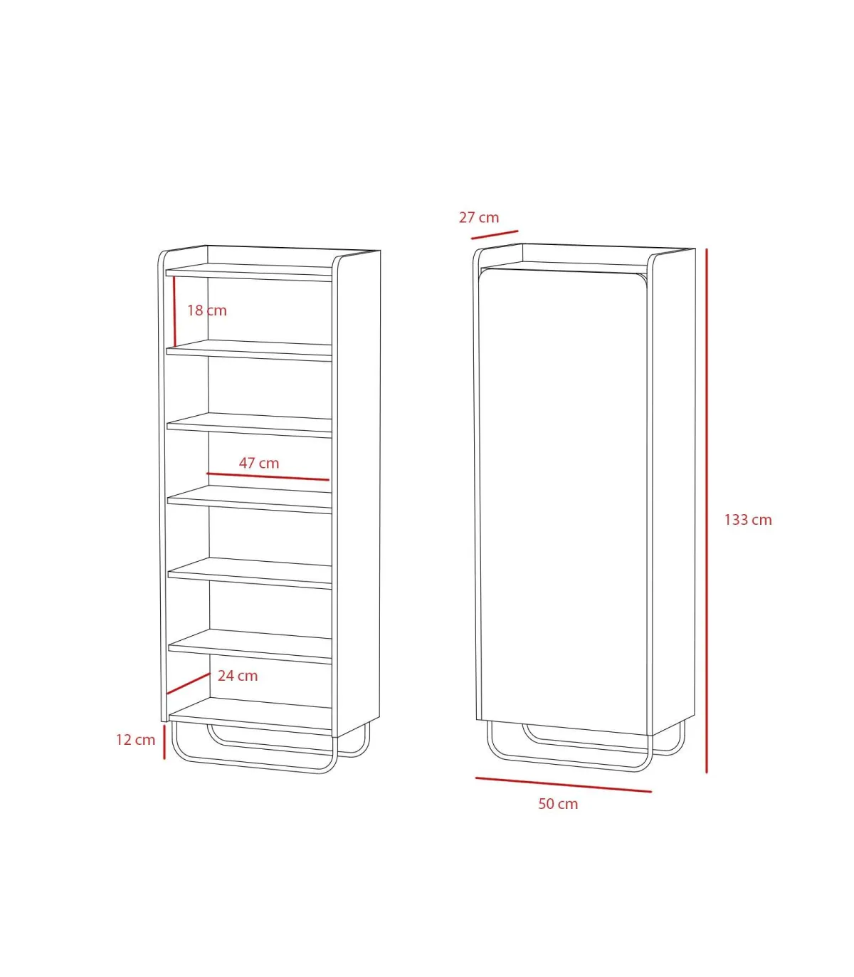 O sapateiro feito de melamina, com pernas de metal é um mobiliário de armazenamento perfeito para organizar seus sapatos. Tem uma porta e 5 prateleiras internas, proporcionando amplo espaço para armazenar entre 12 e 14 pares de sapatos. Seu design de melamina garante durabilidade e resistência, enquanto as pernas metálicas lhe dão estabilidade. É a solução ideal para manter seus sapatos arrumados e acessíveis.