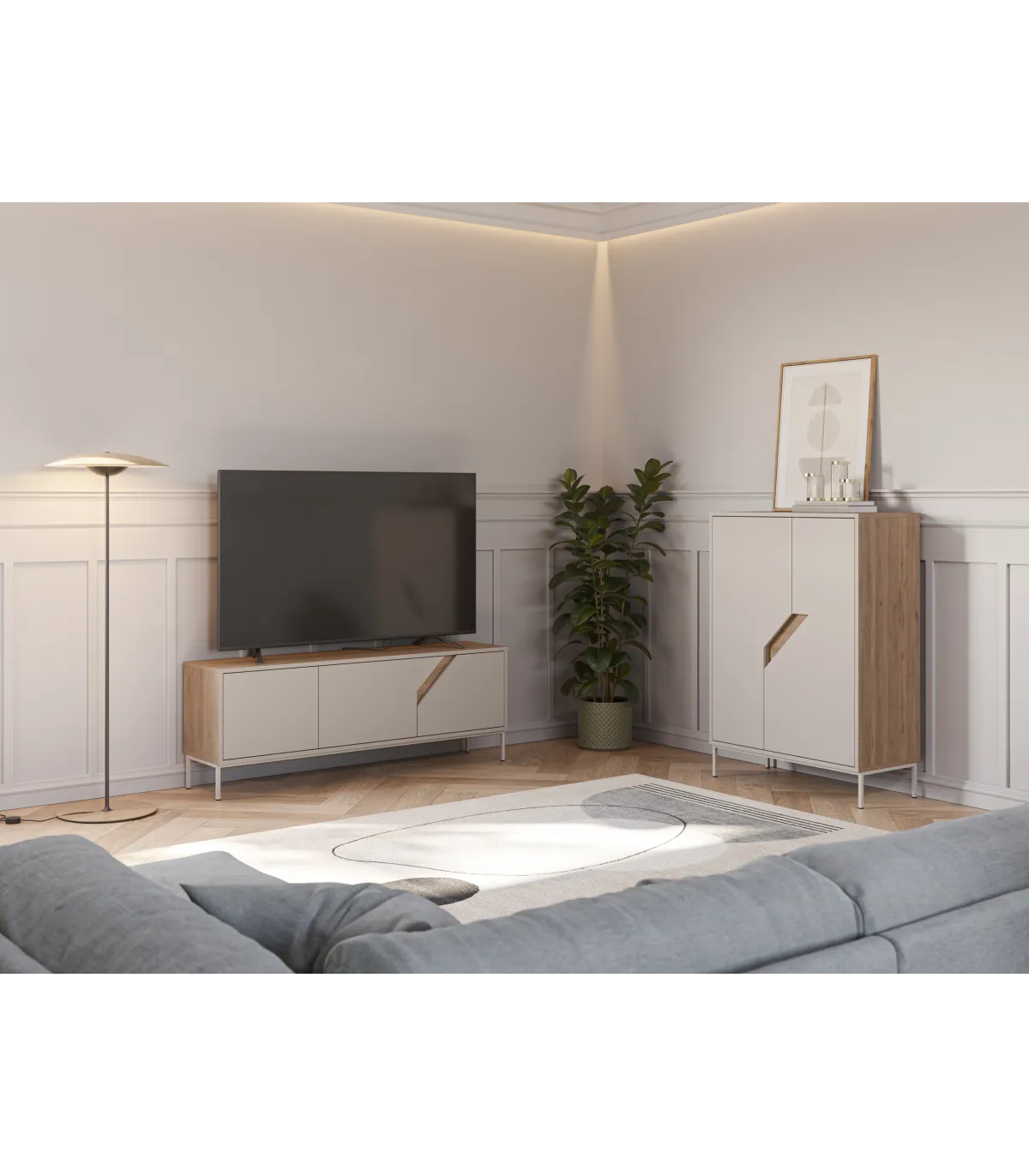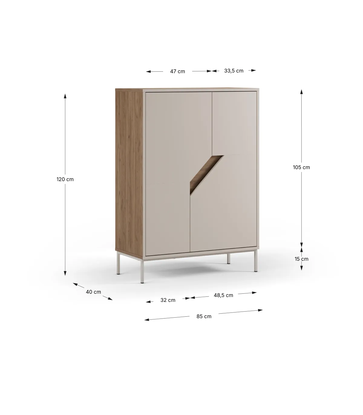 Alta mod de móveis assistente. Regina 2 Portas, Crema Acabamento e Roble Sepet.