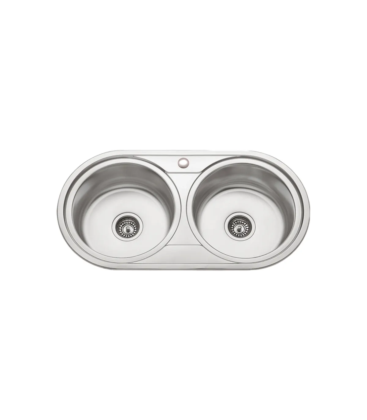 Dois seis pia em aço inoxidável e com forma redonda de tamanho muito bom e com bastante profundidade.