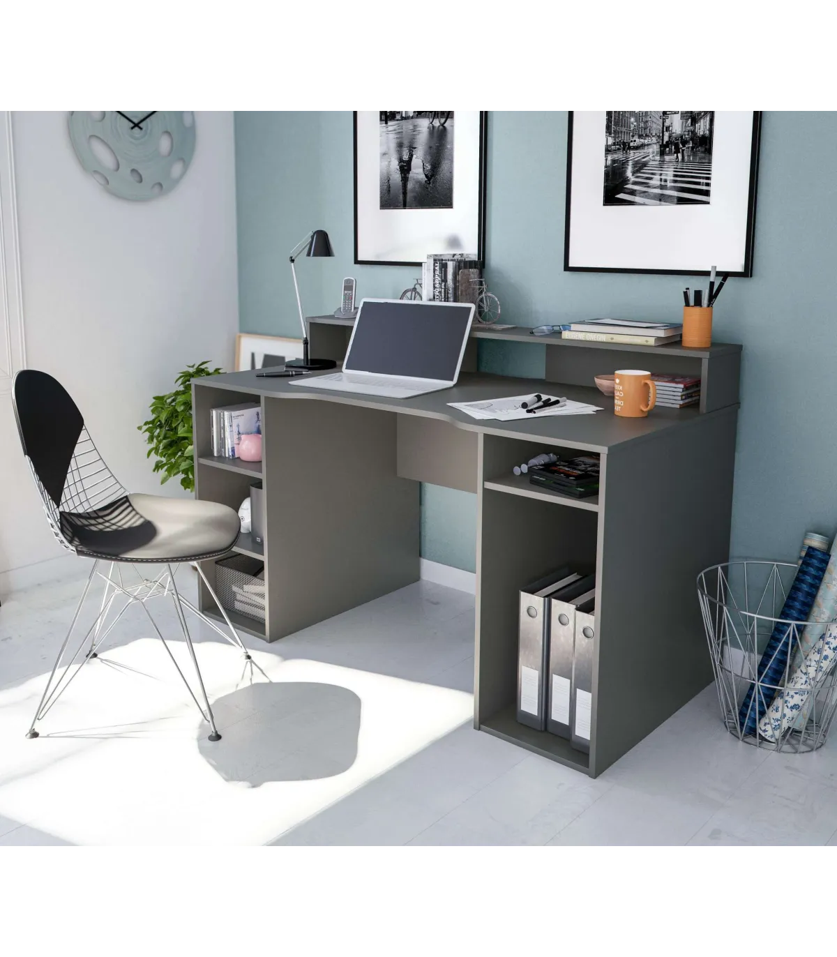 Mesa de computador antracite Gamer cinza. Ideal para o quarto da juventude, escritório ou sala de estúdio.