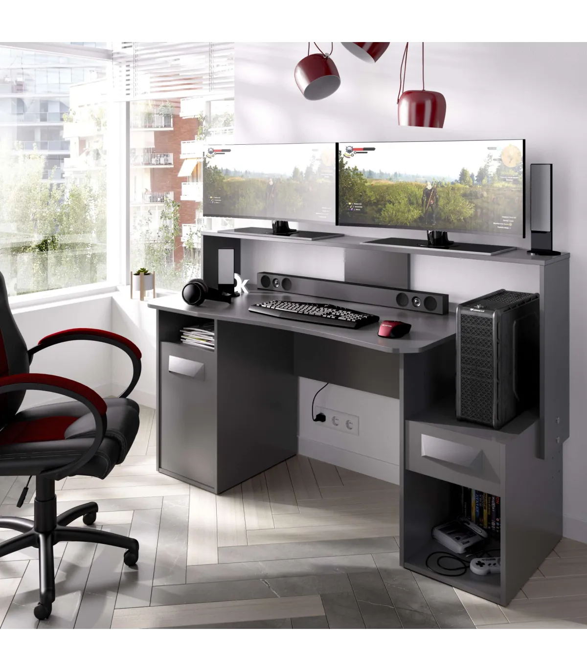 Jogos de mesa de trabalho em grafite com design fabuloso. Consiste em uma gaveta, uma porta e vários buracos para que você possa armazenar o que você quer. A cor de grafite vai olhar ideal e é fácil de combinar.