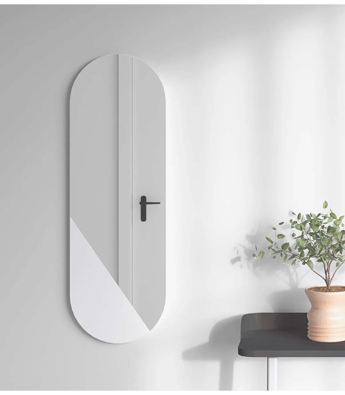 Espelho de parede em linhas arredondadas com forma assimétrica e design moderno. Se você quiser dar um toque diferente na entrada, a sala de estar ou mesmo o quarto, este espelho será a melhor escolha graças à sua simplicidade e originalidade. Além disso, as bordas traseira e MDF terminaram branco