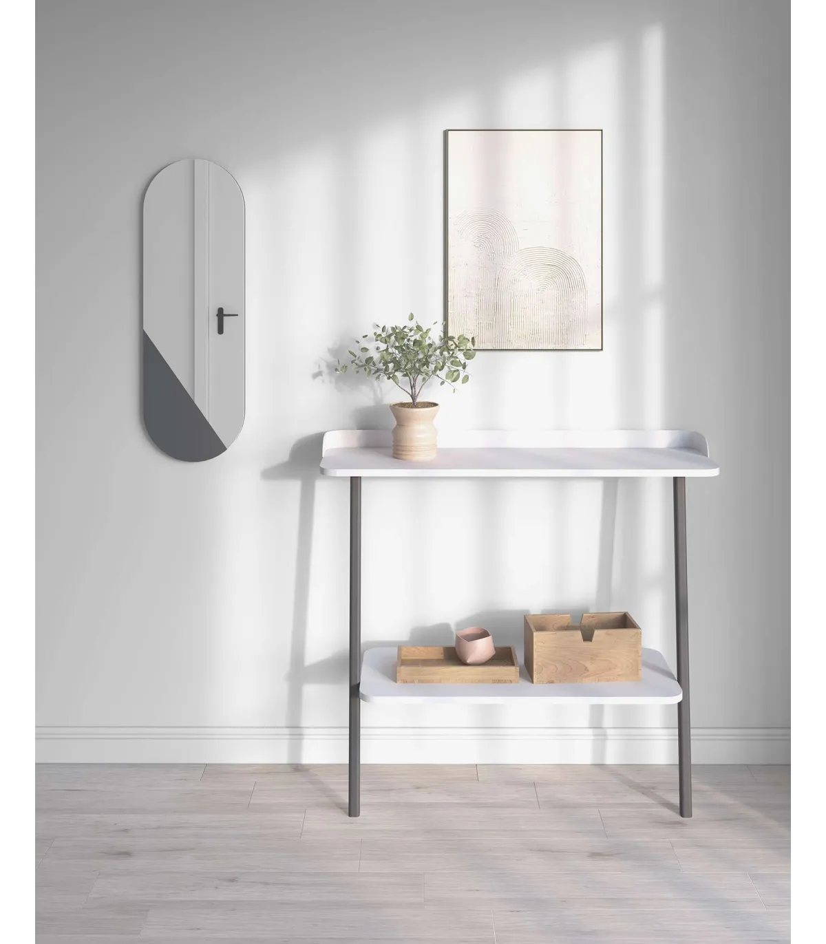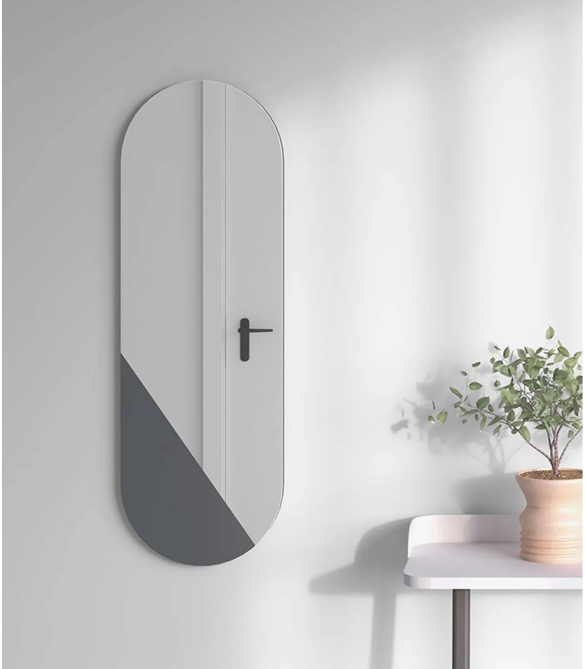 Espelho de parede em linhas arredondadas com forma assimétrica e design moderno. Se você quiser dar um toque diferente na entrada, a sala de estar ou mesmo o quarto, este espelho será a melhor escolha graças à sua simplicidade e originalidade. Além disso, as costas e bordas de MDF terminaram grafite.