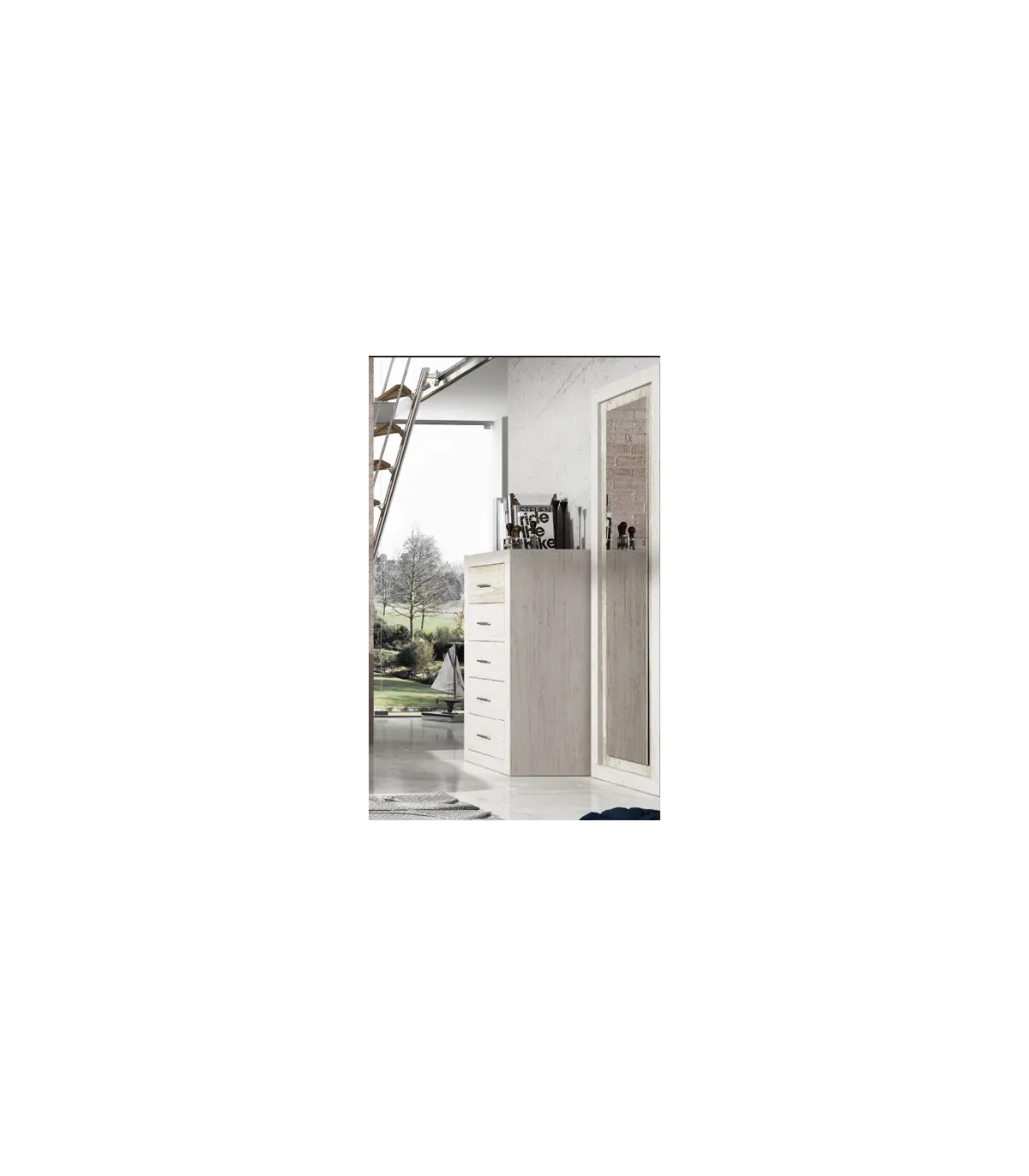 Armário de espelho para o modelo de quarto Kansas, frentes de madeira terminadas na cor artística.