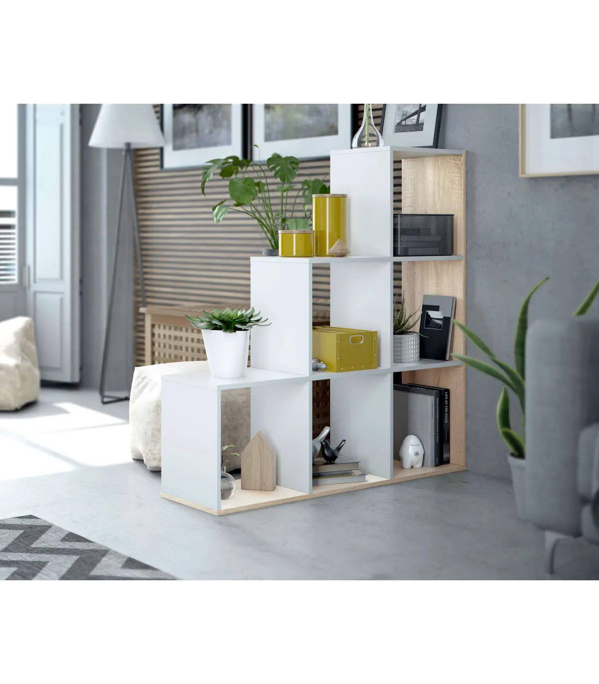 Esta prateleira é perfeita para aquela parede em sua casa onde você não sabe o que colocar ou mesmo como um separador de espaço. É bonito em si mesmo graças ao seu design irregular, mas também irá servi-lo para decorar ou expor seus livros favoritos.