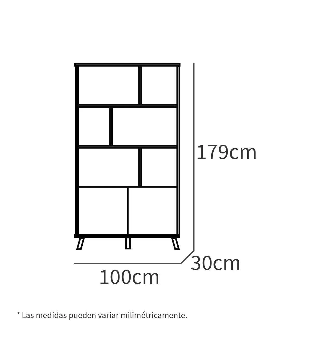 180 cm (alto) x 100 cm (largura) x 30 cm (prof.)