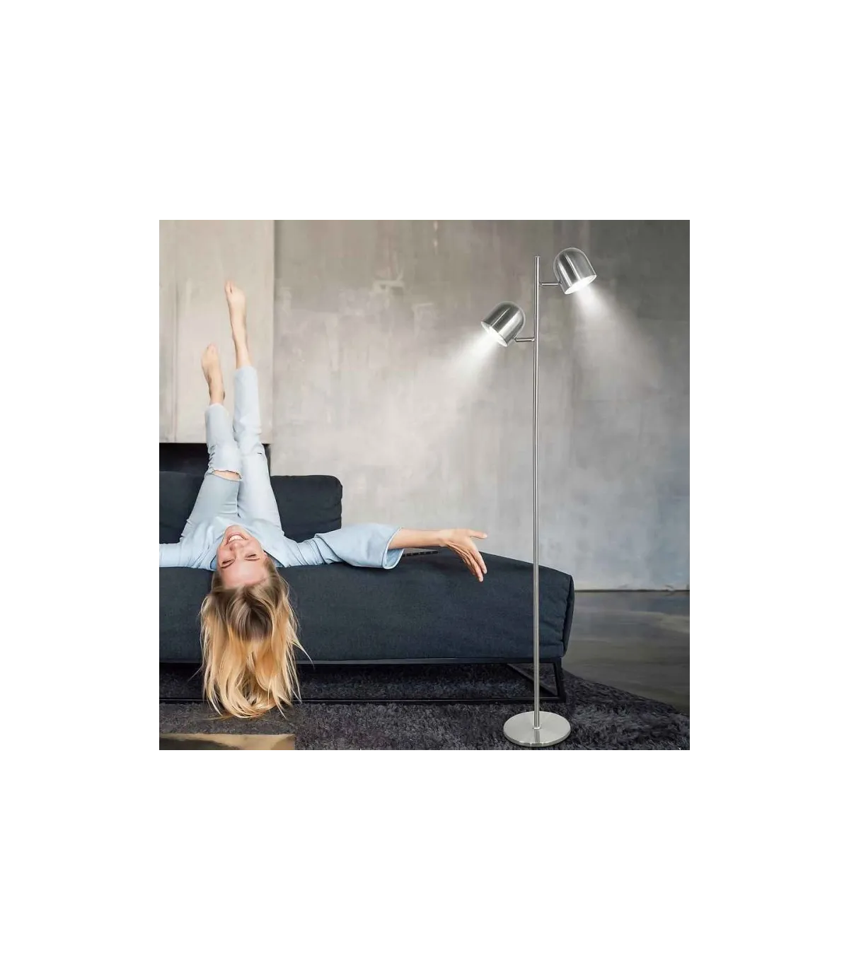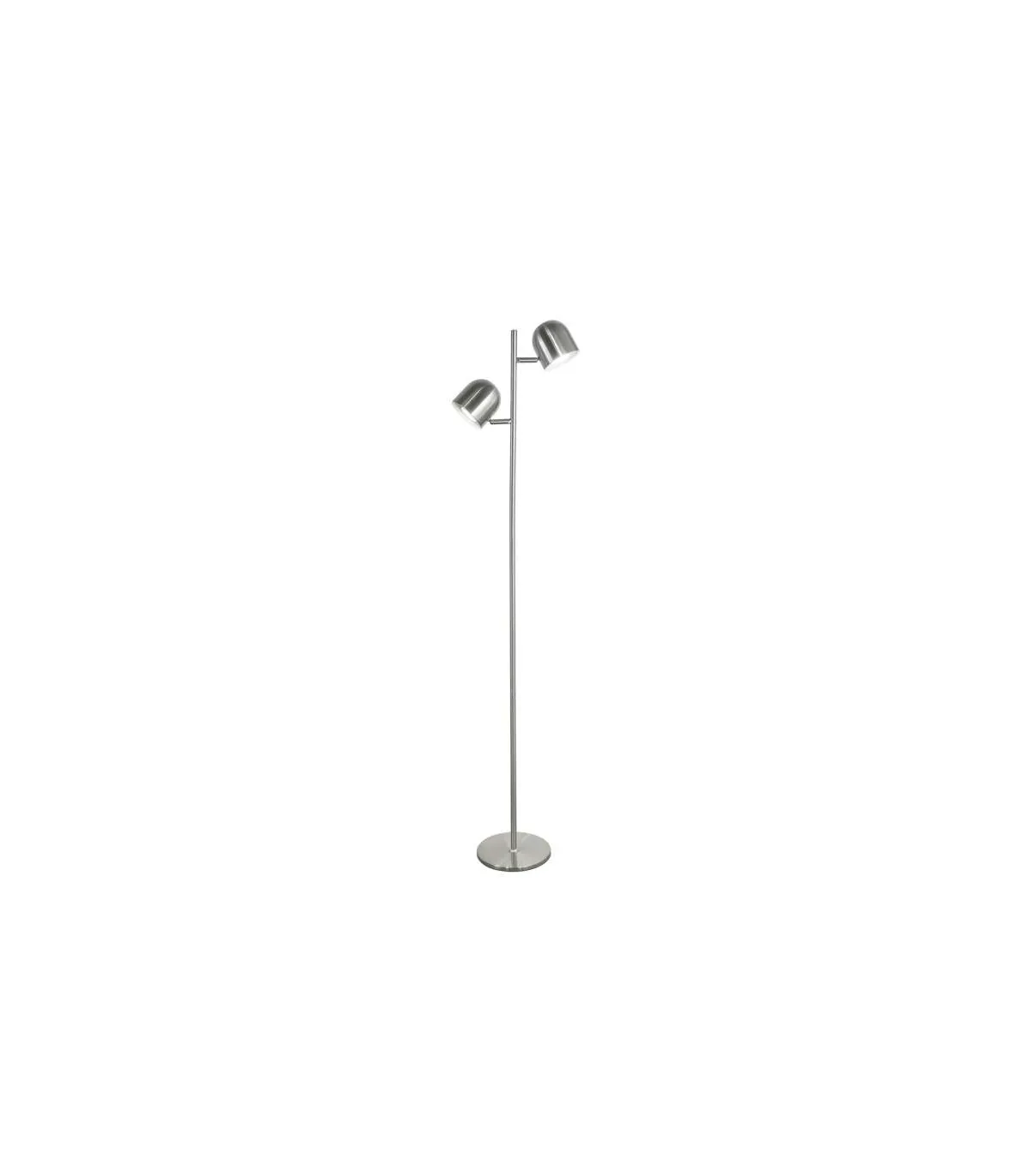 Lâmpada de assoalho de 2 luzes de prata, com leitor feito de metal e material sintético