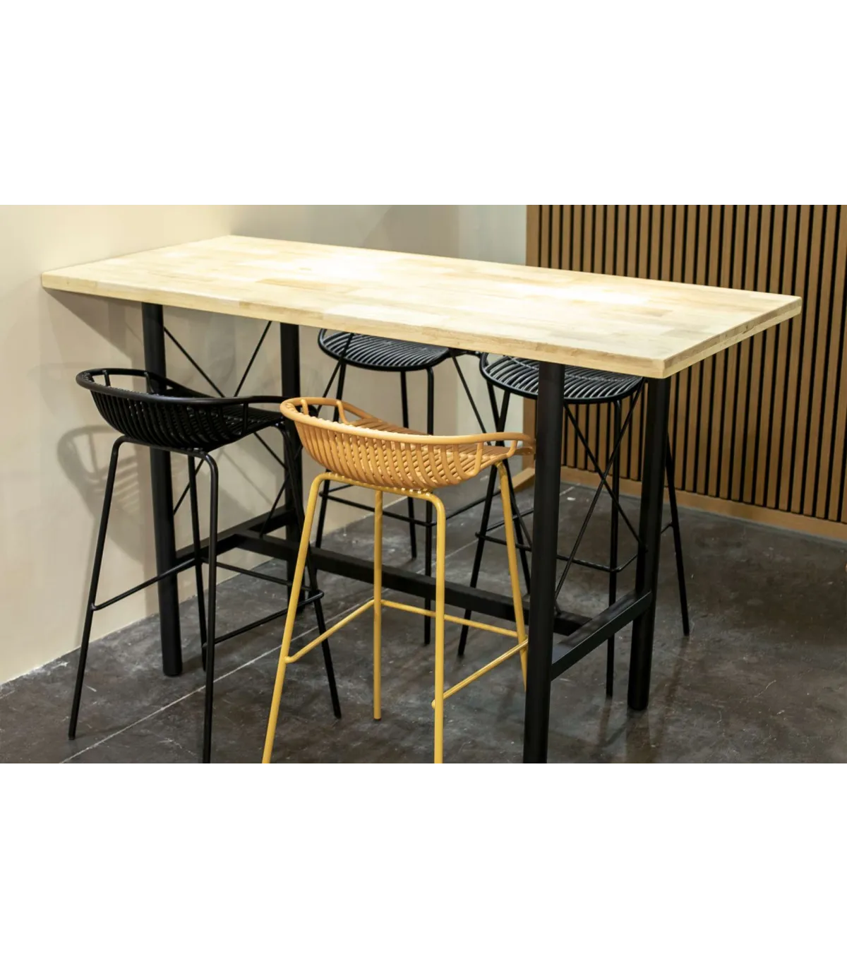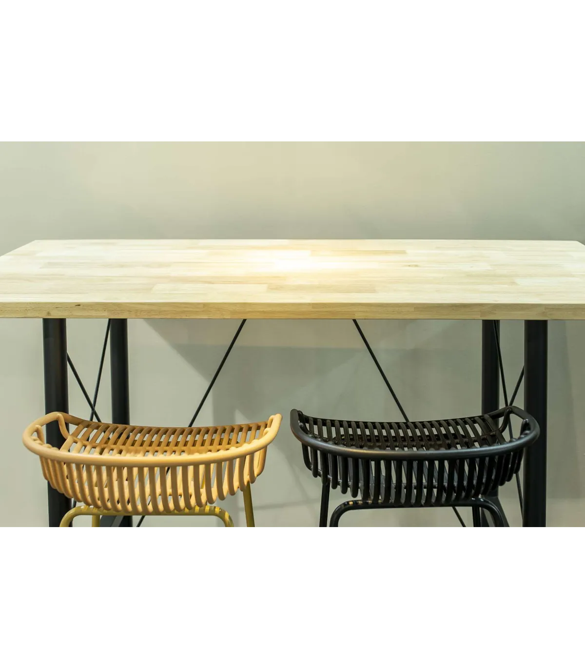As pernas de metal preto fornecem uma estética moderna e ousada para a mesa. Estas pernas não são apenas visualmente atraente, mas também são projetados para fornecer a estabilidade necessária e suporte para um espaço de barra em movimento. O contraste entre madeira e metal adiciona um equilíbrio estético que define o estilo característico da tabela do modelo Loft.