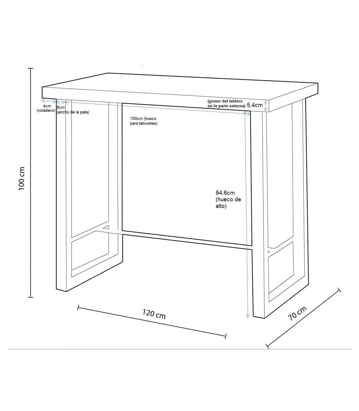 -Medidas: 120 x 70 x 100 cm (largo x largura x altura)