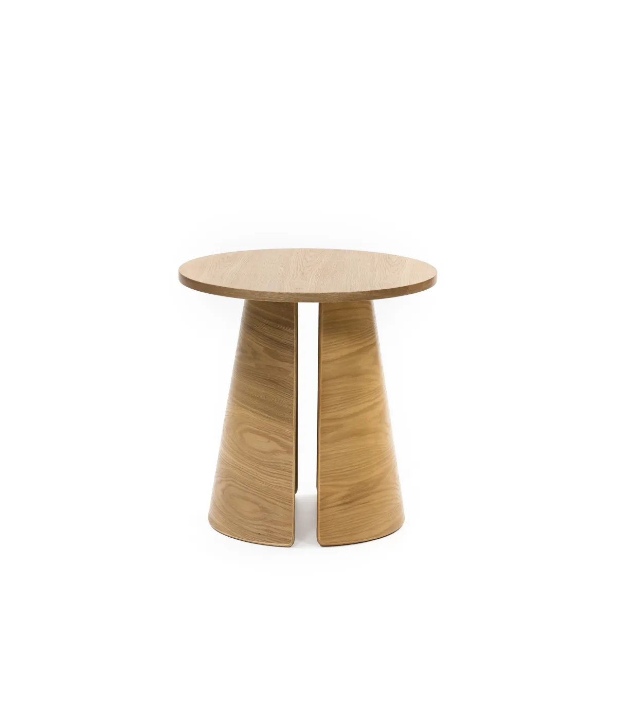 Mesa lateral Canto do modelo do Cep, é simples e minimalista, onde apenas com duas peças simétricas é gerado a base na qual a placa é suportada, gerando um design simples que destaca a honestidade da madeira e o cuidado de cada detalhe. Capa e base são feitas em madeira compensada de travagem tinta, onde você pode apreciar as veias.
