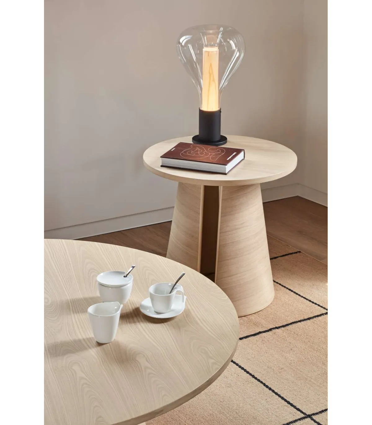 Mesa lateral Canto do modelo do Cep, é simples e minimalista, onde apenas com duas peças simétricas é gerado a base na qual a placa é suportada, gerando um design simples que destaca a honestidade da madeira e o cuidado de cada detalhe. Capa e base são feitas em madeira compensada de travagem tinta, onde você pode apreciar as veias.