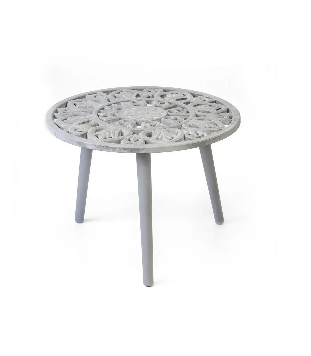 Esta mesa auxiliar, com um final cinza elegante e pequenas gravuras, combina estilo e funcionalidade. Fabricado em MDF e Wood Lacado de Pinho, oferece uma superfície durável e resistente. Seu design sofisticado e detalhado faz com que seja uma peça proeminente que fornece um toque moderno e refinado a qualquer sala.