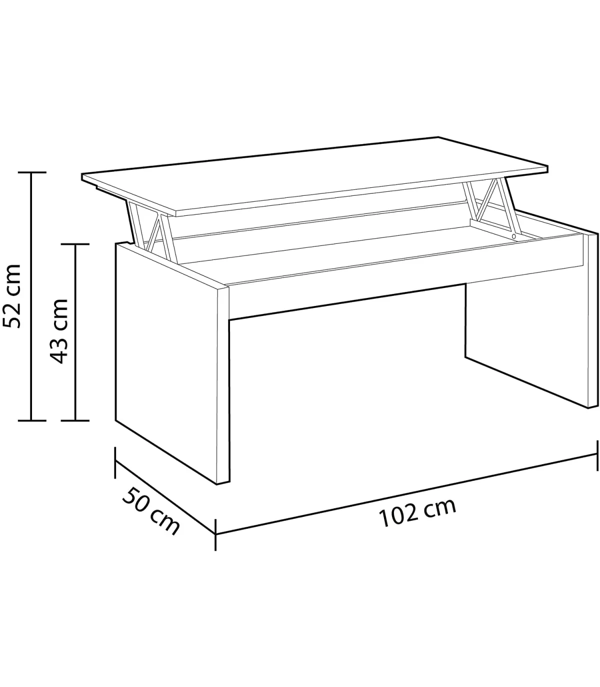 - 43-54 cm (alto) x 102 cm (largura) x 50 cm (prof.)