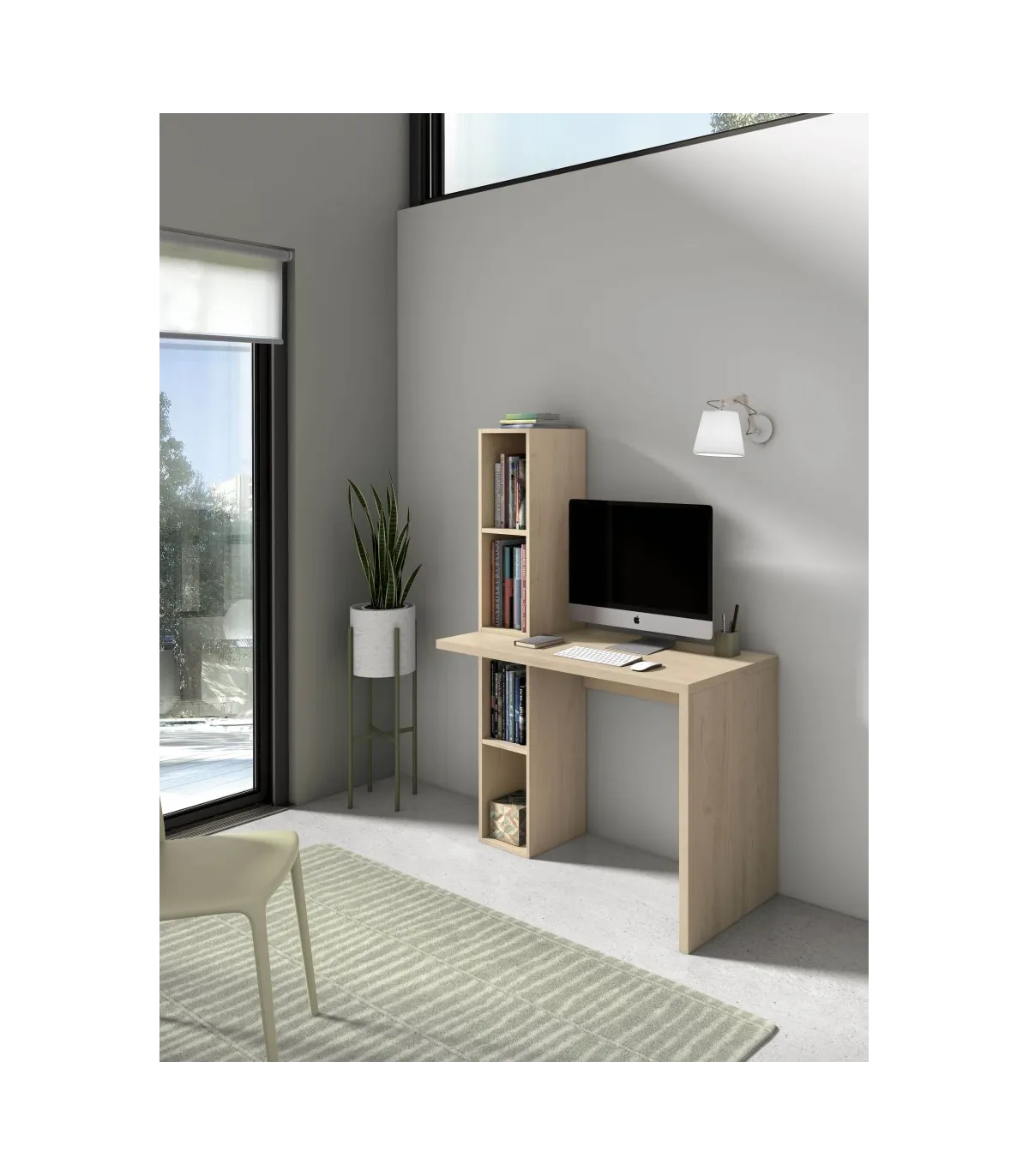 Escritor Helsínquia 639 , formado por uma bancada retangular, com queda , em cascata de sua parte , direita , e com uma prateleira lateral , no lado esquerdo. Esta prateleira tem, uma área inferior como suporte da tampa, e uma mais alta. Ambos têm dois compartimentos divididos por prateleiras. É feito de melamina de alta qualidade com acabamento de carvalho. Sua ampla área de trabalho e a prateleira lateral ideal para livros ou documentos.