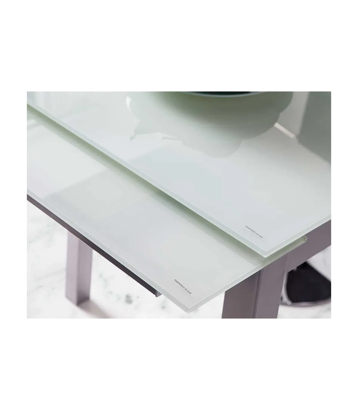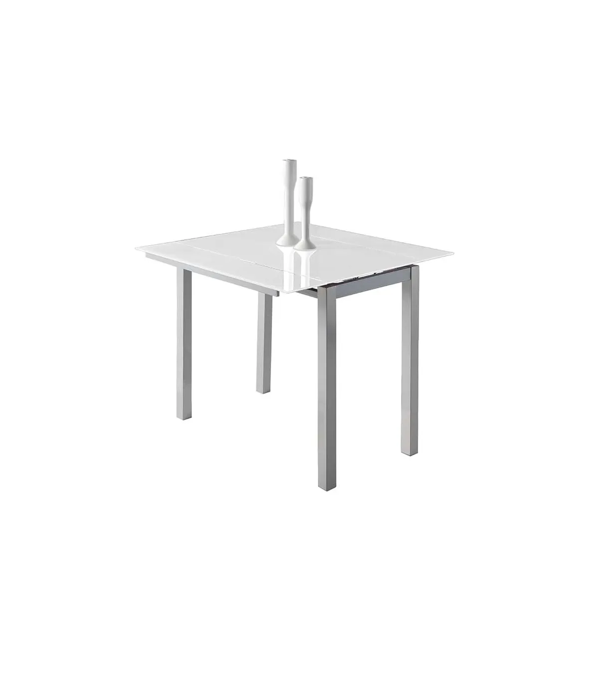 Mesa de cozinha extensa Laia terminou vidro branco, 95cm (largo) x 55/95cm de largura x 76cm (alta)