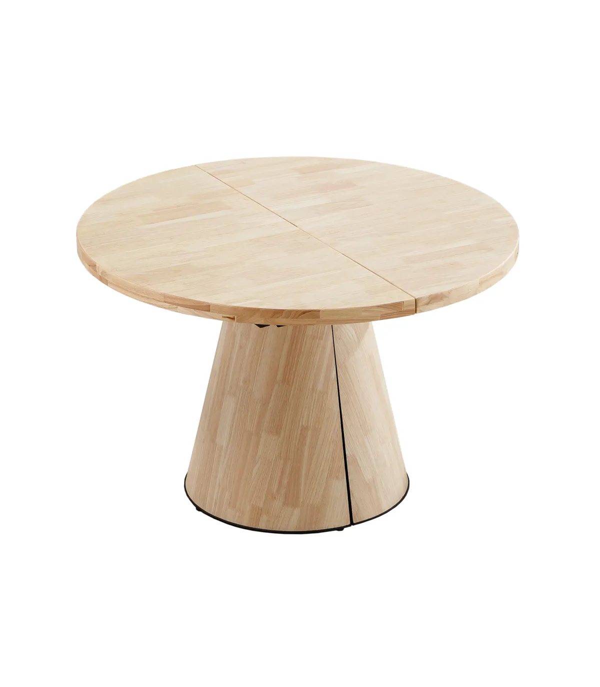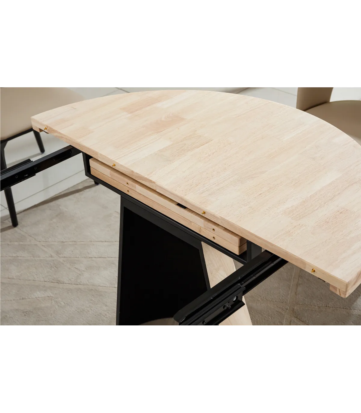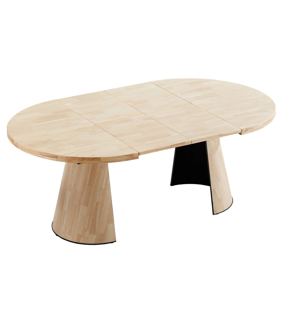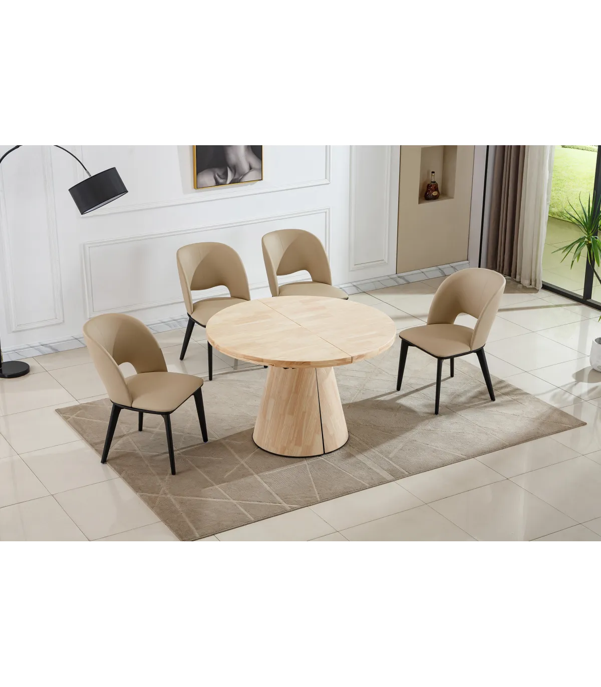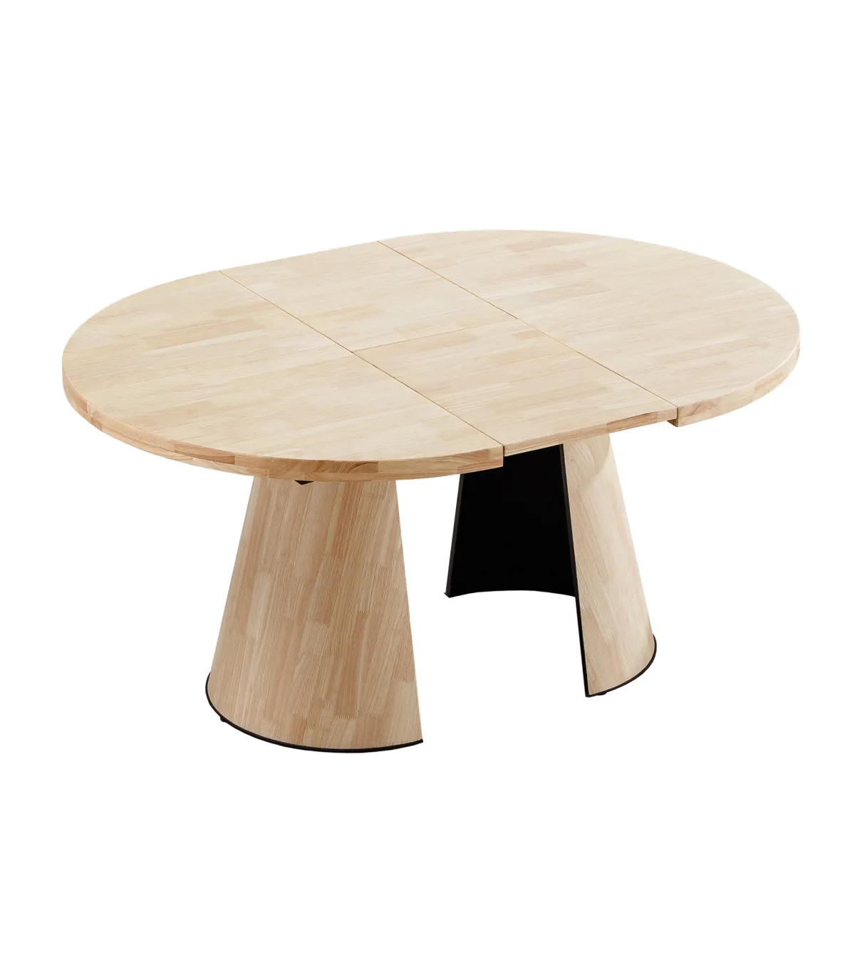 O Quénia Extensible Dining Table combina funcionalidade e design nórdico para atender a qualquer espaço. Sua estrutura é feita de MDF com revestimento de madeira sólida e folha de carvalho, oferecendo um acabamento quente e elegante. As pernas de madeira cônicas proporcionam estabilidade e um toque distintivo.