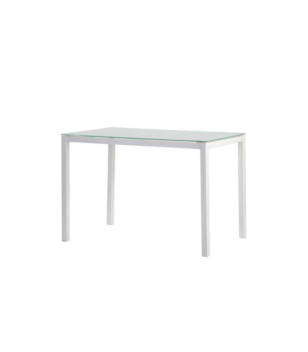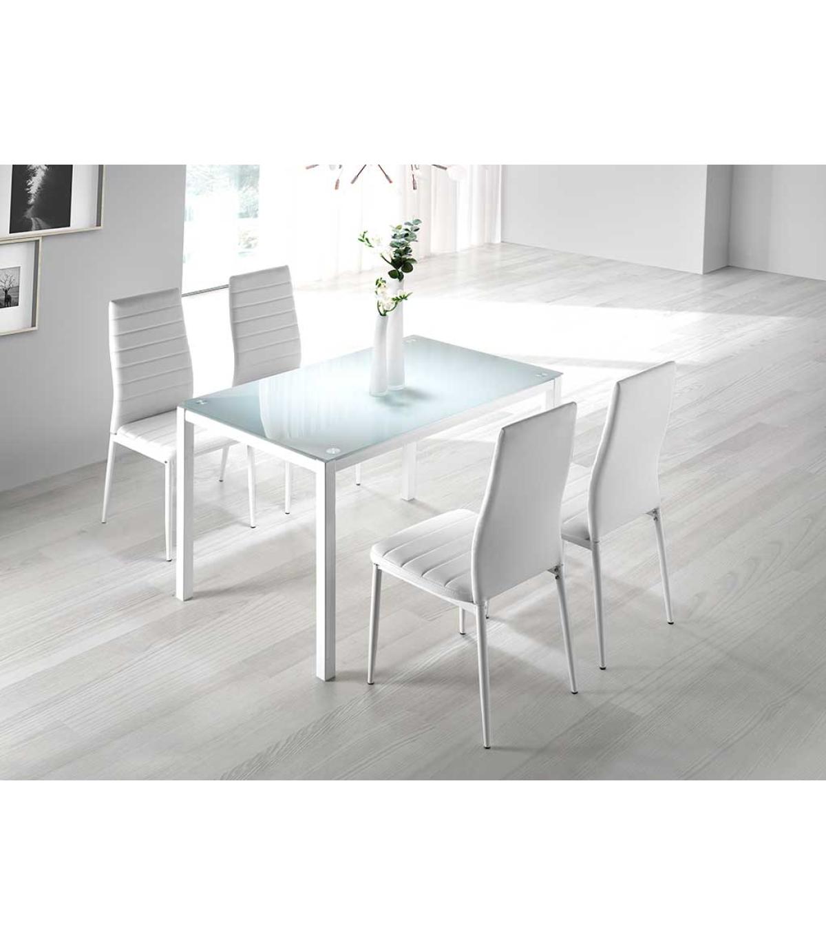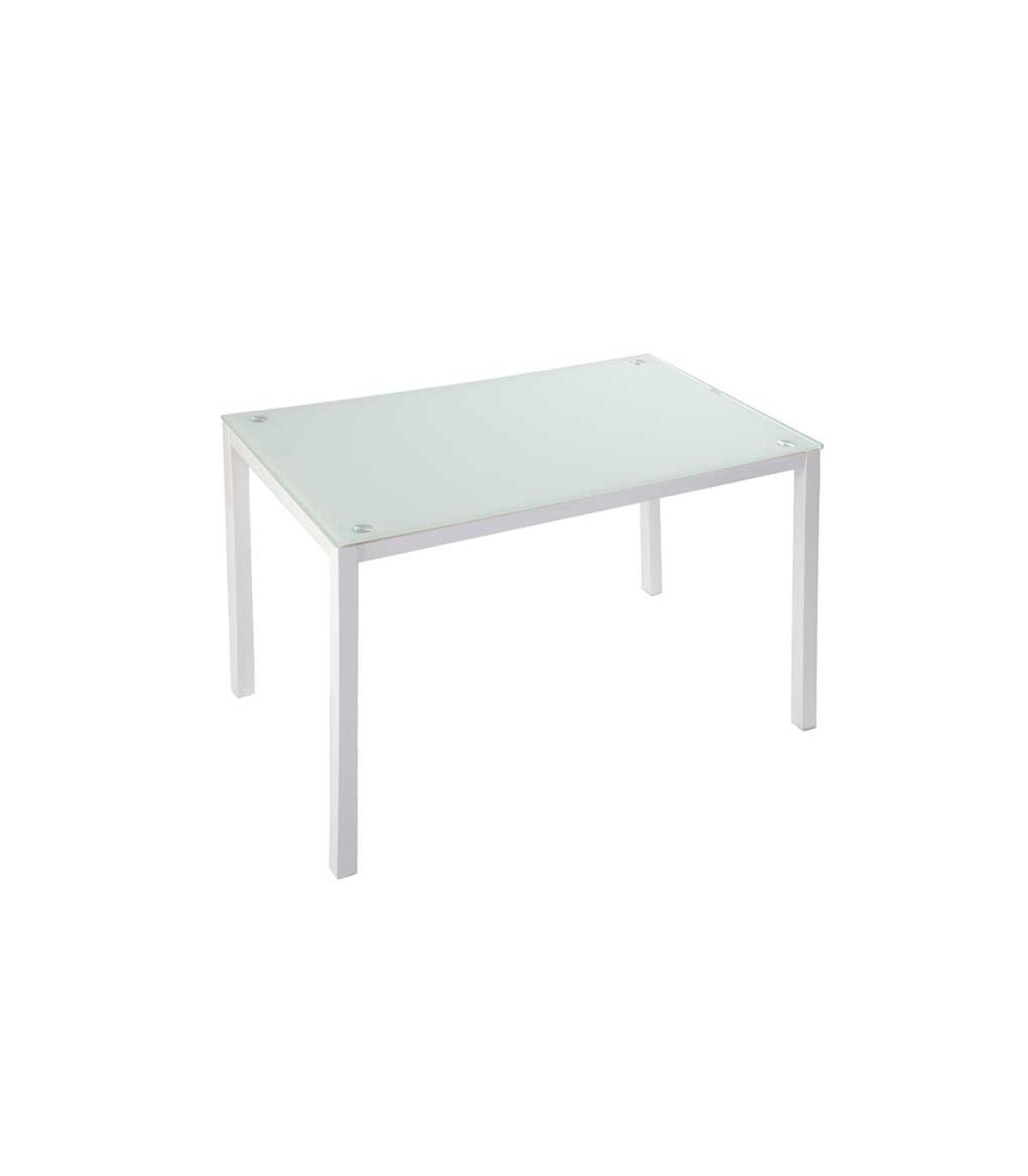 Nice e ao mesmo tempo simples mesa de salão fixo com parte superior de vidro branco e pernas de metal lacado branco que dará o toque perfeito tanto se você colocá-lo na sala de estar ou na cozinha, porque também pode valer da mesa de cozinha.