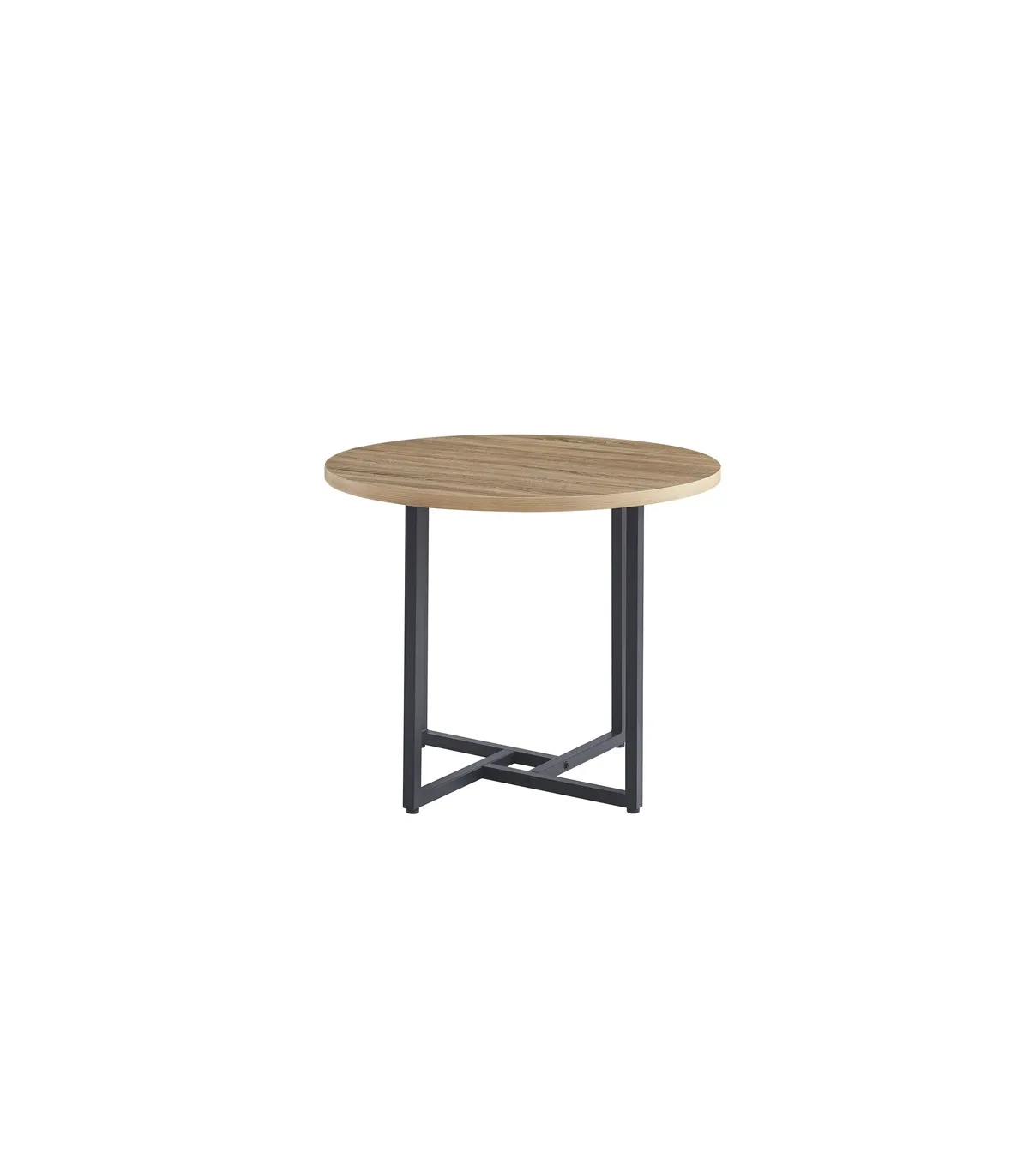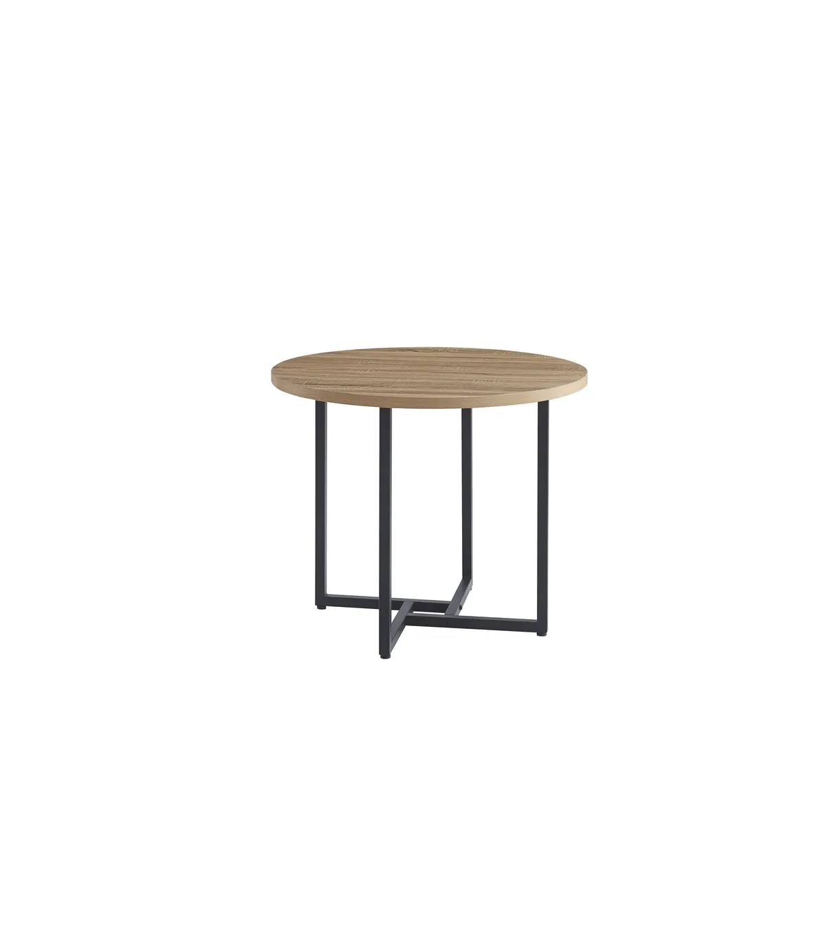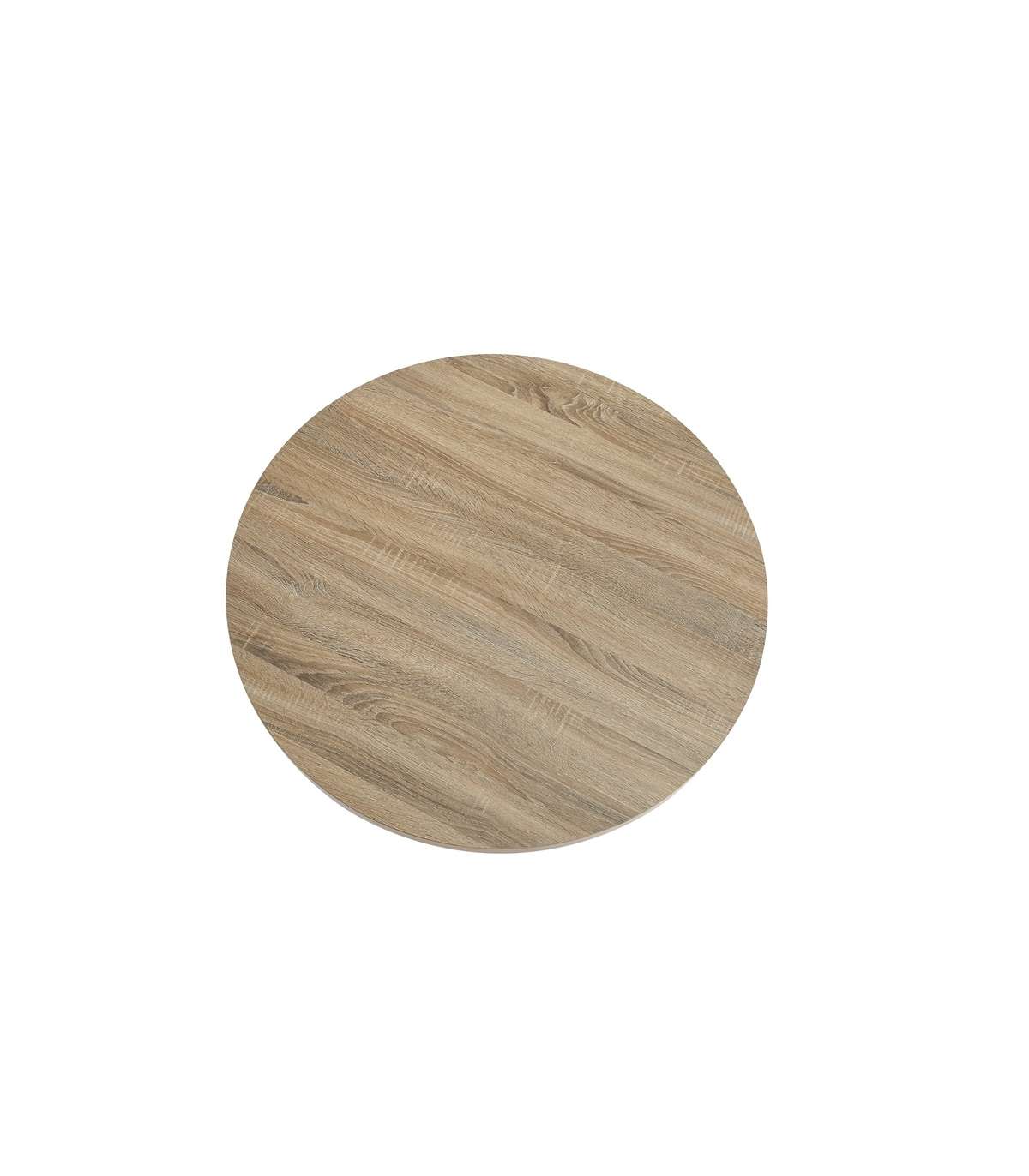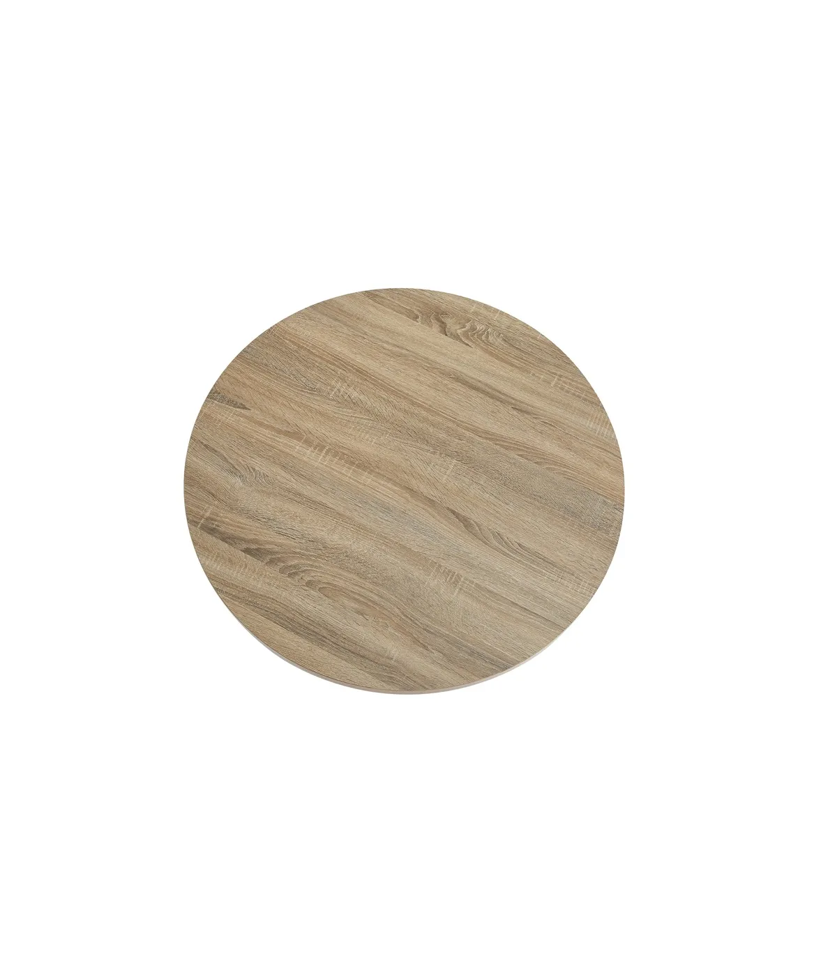 A mesa redonda Cleo destaca-se pelo seu design elegante e versátil, ideal para salas de jantar, cozinhas ou espaços de reunião. Sua tampa feita de melamina com um acabamento de carvalho serrado fornece um toque quente e natural, criando uma atmosfera acolhedora.