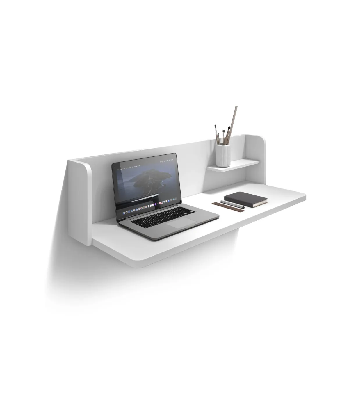 Wall desk suspenso do estilo moderno e atual, ideal para qualquer estadia em sua casa. Fabricado em folhas de duas lâminas, pintadas em PVC e com cantos brancos arredondados.