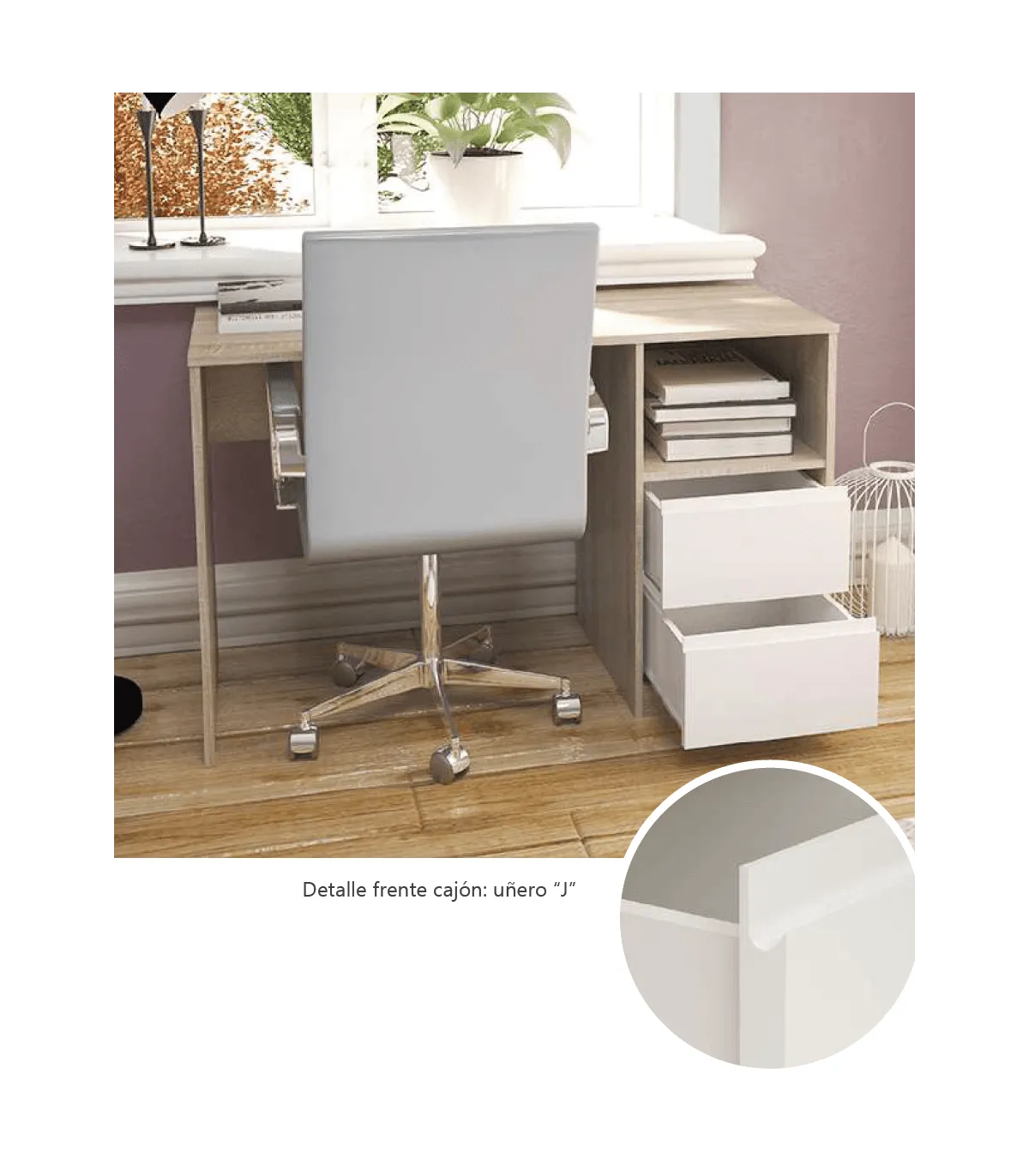 Tabela de estudo 2 gavetas carvalho/cor branca. então combina com tudo.