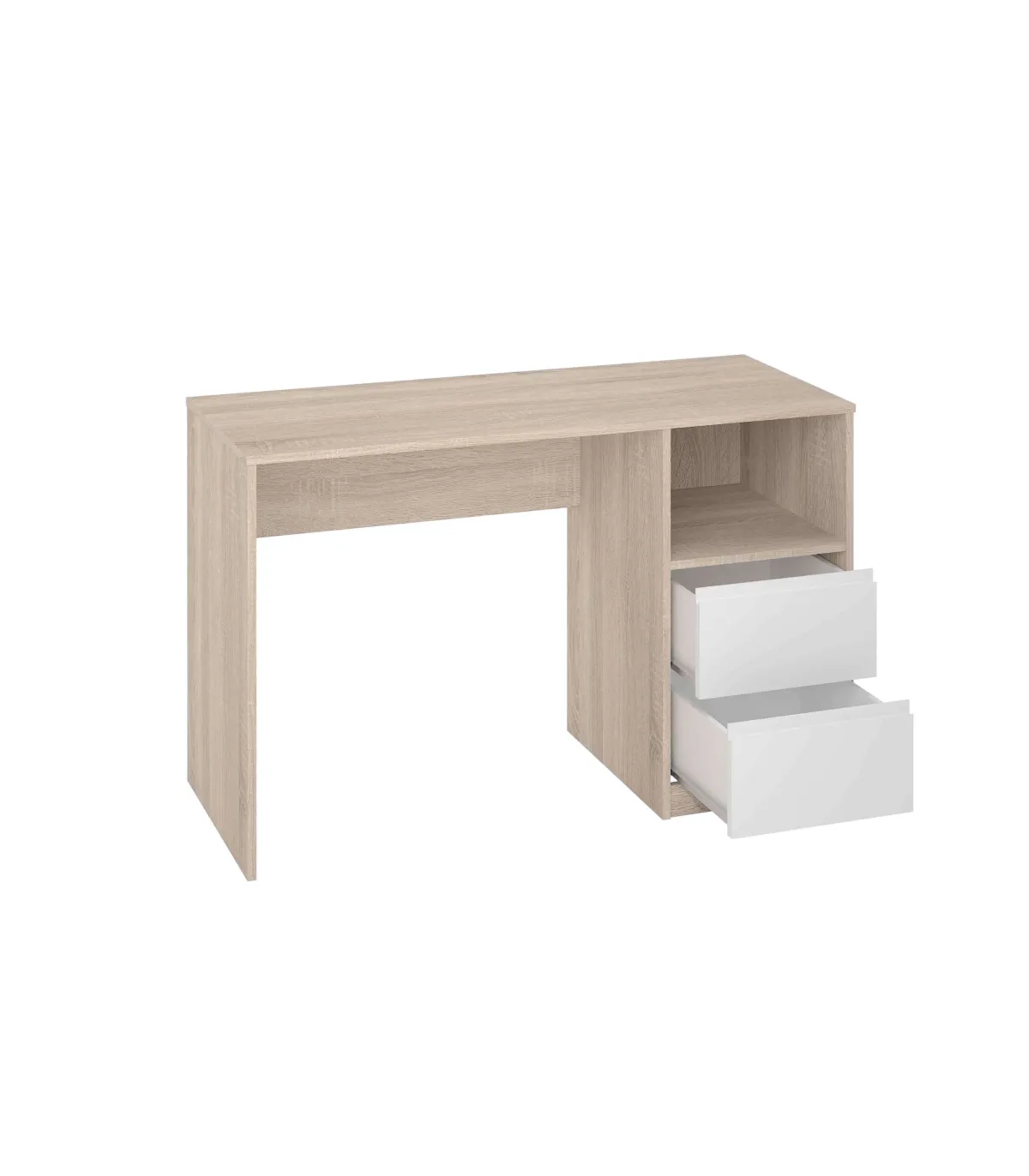 Tabela de estudo 2 gavetas de acabamento carvalho/branco 75 cm (alto)120 cm (largura)50 cm (parte de trás)