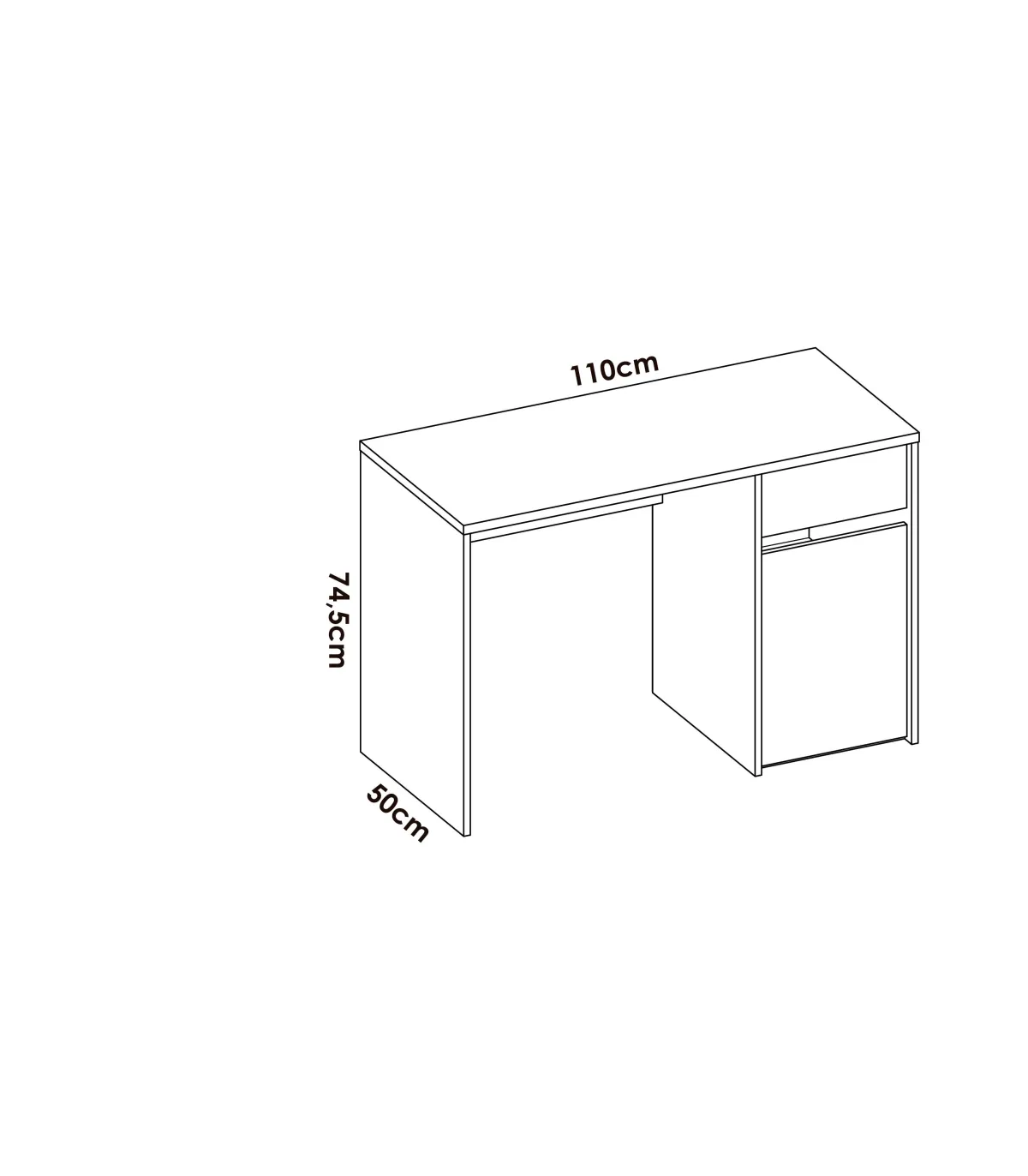 Secretária Rocio com porta + gaveta acabamento branco, 74cm (altura) 110cm (largura) 50cm (profundidade)