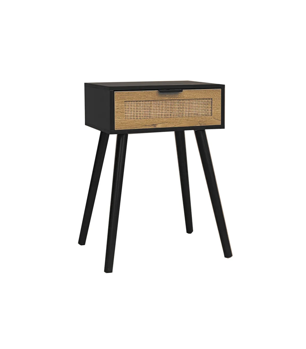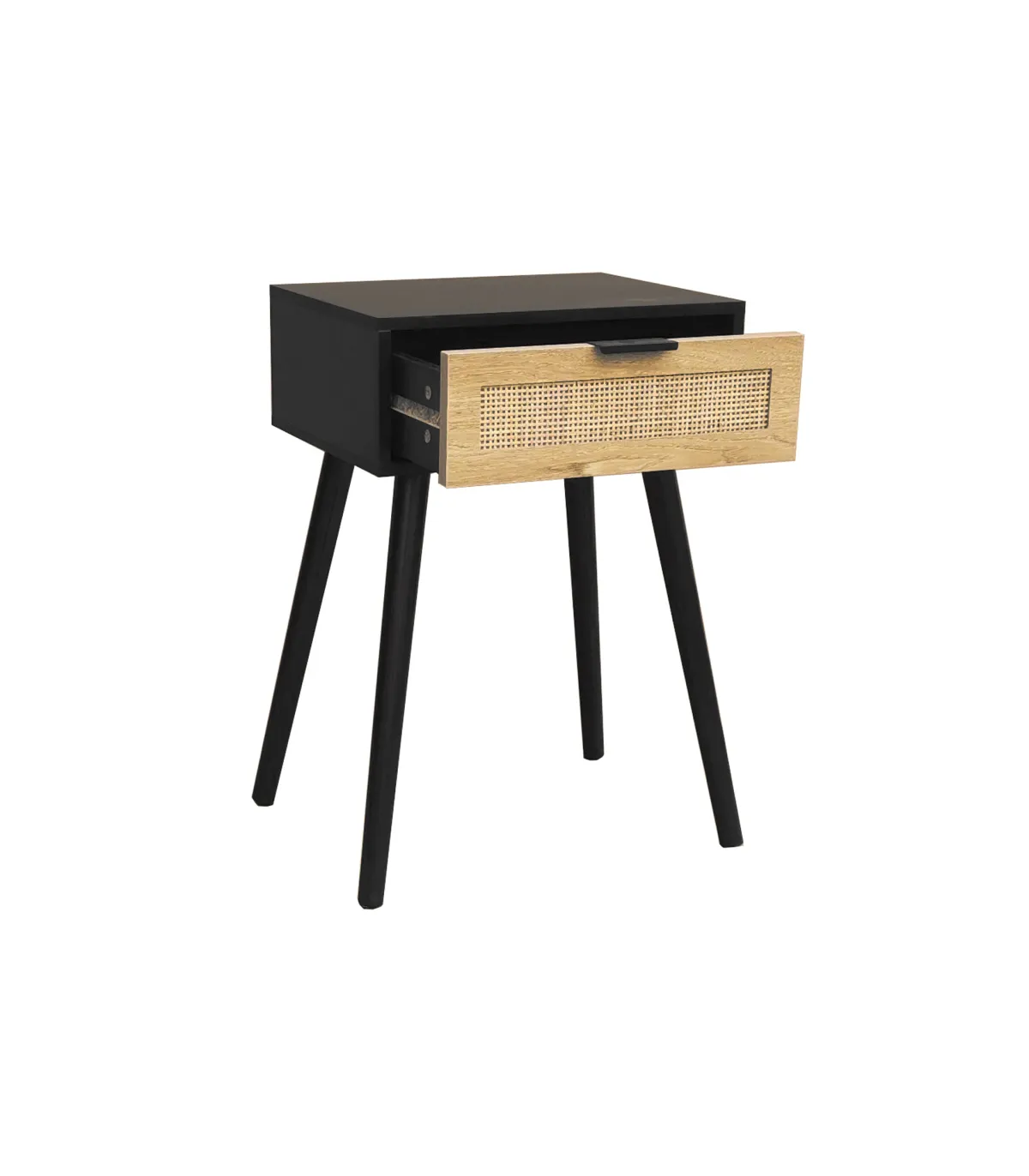 Noite Tabela 1 Gaveta MD-Freya Acabamento Preto / Rattan, 60 cm (alto) 40cm (largura) 30cm (fundo).