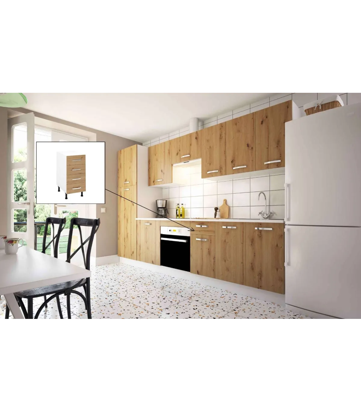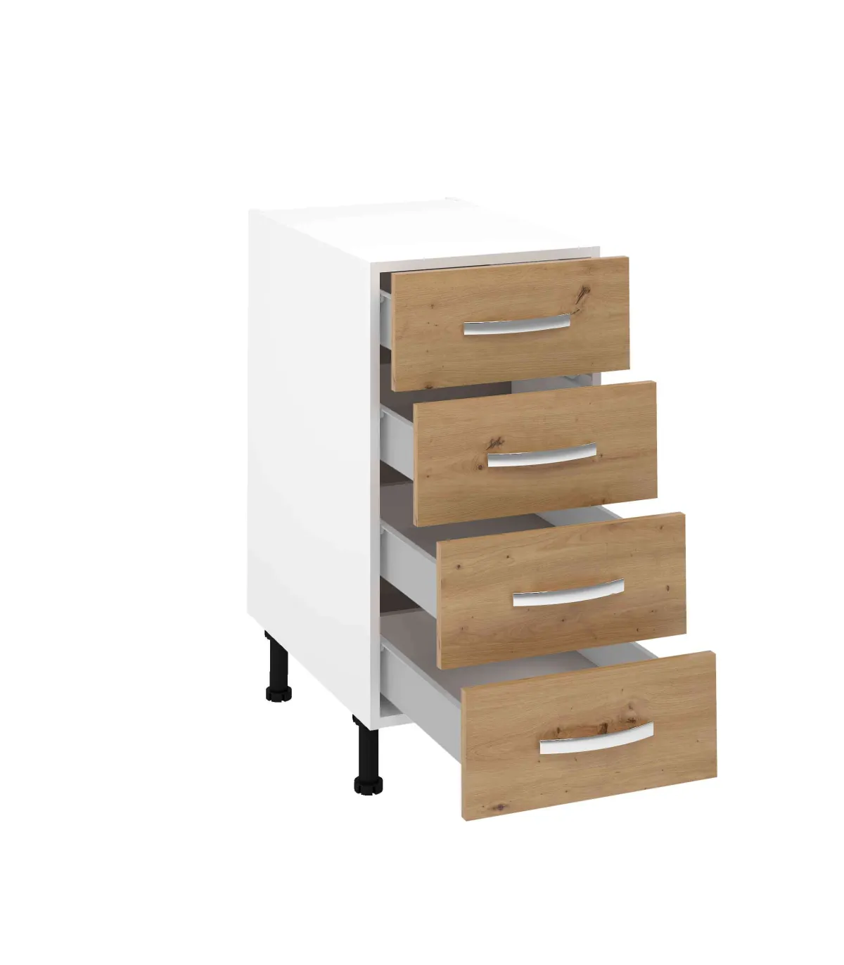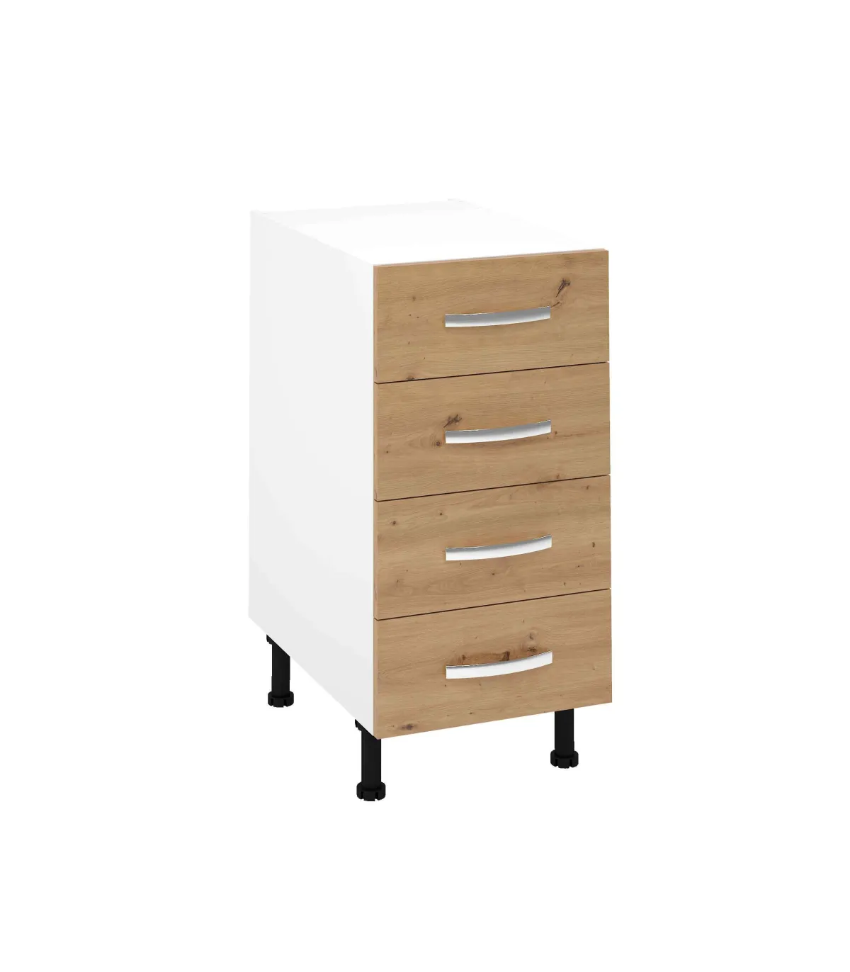Armário de cozinha baixo com 4 gavetas em carvalho séssil.83 cm (altura) 40 cm (largura) 58 cm (comprimento)