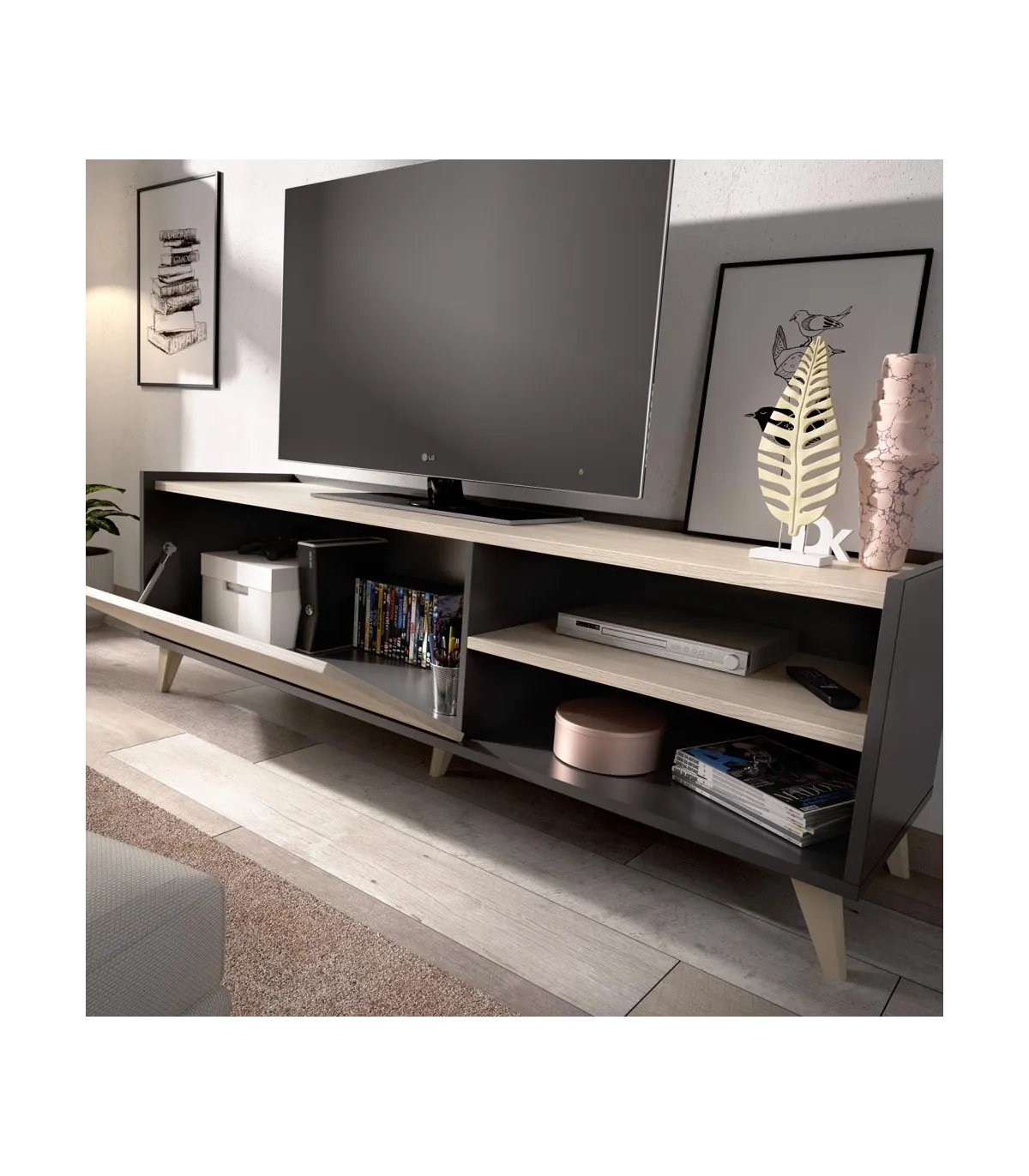 Elegante mobiliário para grafite / televisão natural com um design moderno bonito e acabamentos de alta qualidade. Será ideal em qualquer quarto.