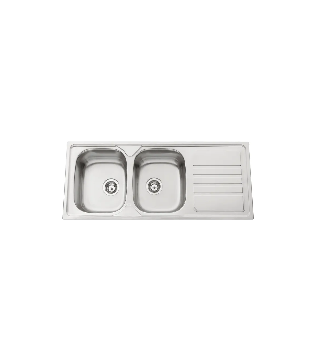 Pia de dois secos + drenagem de aço inoxidável. Tem um tamanho grande, 1,20 metros no total e ao preço muito bom.