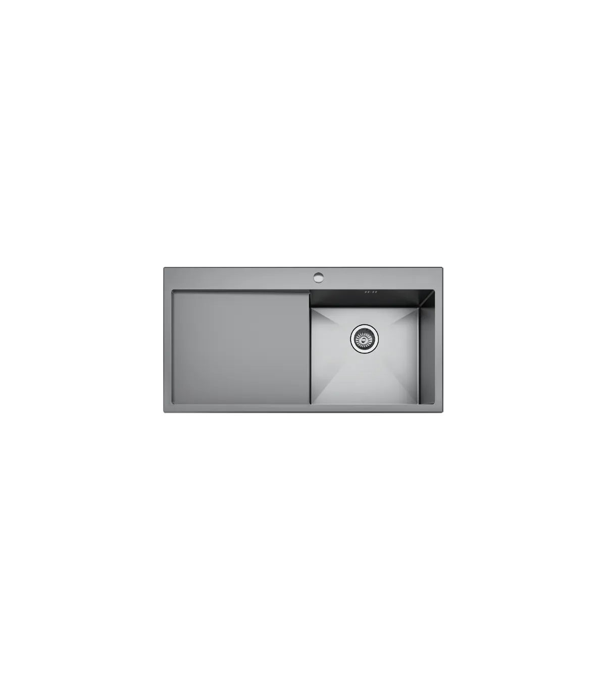 Pia de aço inoxidável com uma forma muito agradável, ele vai olhar grande em sua cozinha.