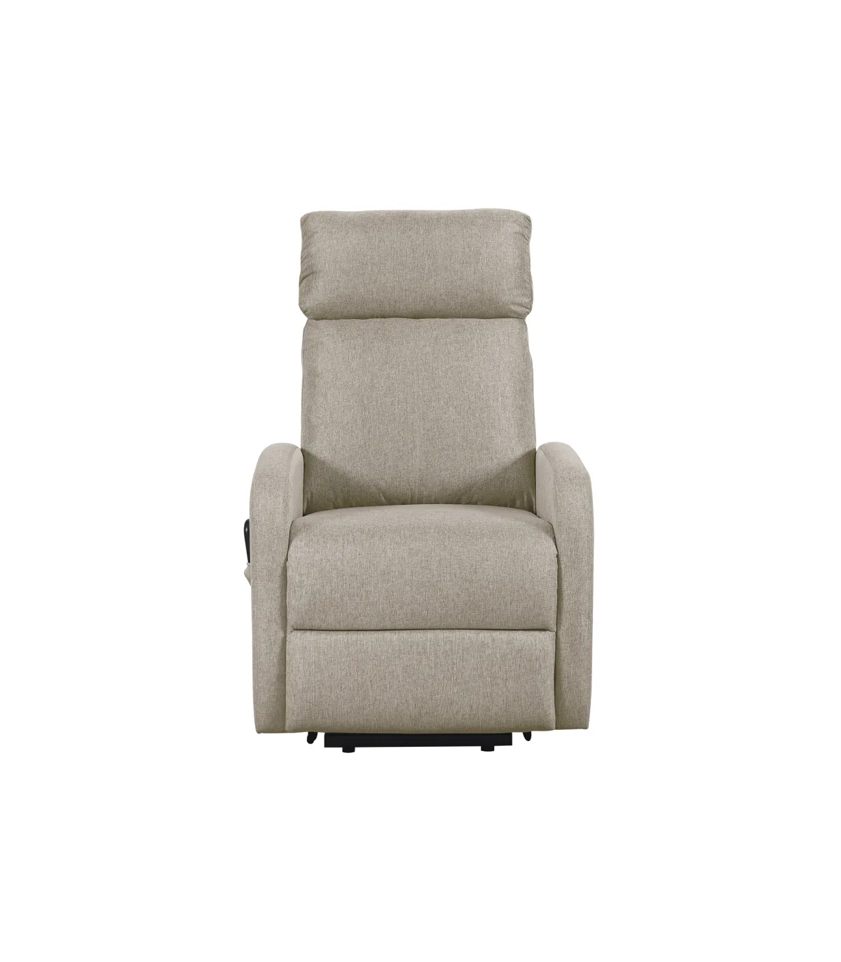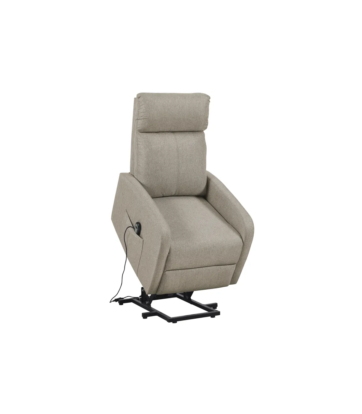 Poltrona elétrica Levantando vida estofada em tecido bege, 104cm (alta) 64cm (largura) 93cm (fundo)