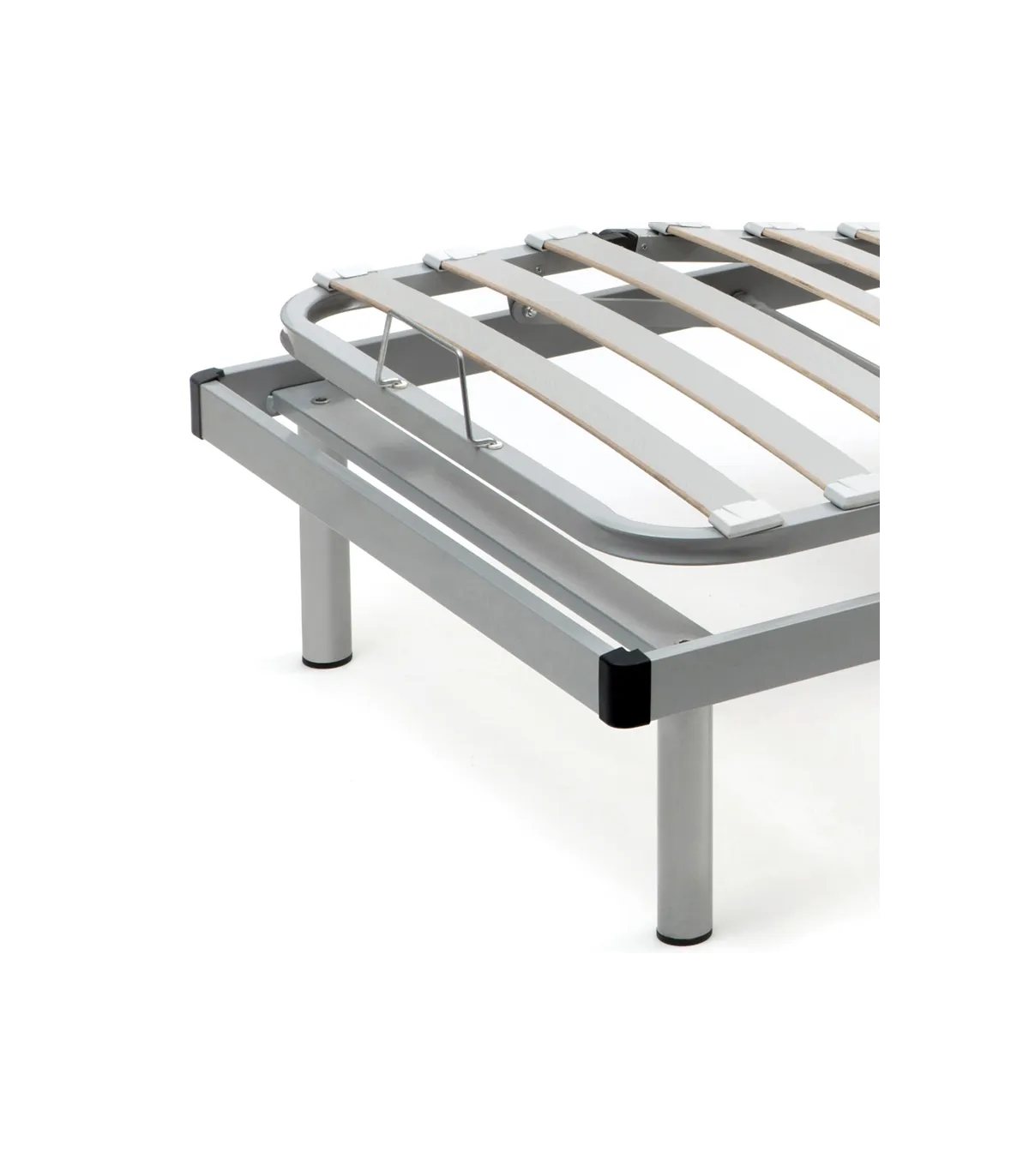 Os planos motorizados Somier 5 apresentam uma estrutura de estrutura dupla sólida e 5 planos de articulação que são regulados por um motor com controle remoto sem fio. Tem lamas flexíveis de 38 mm feitas com madeira compensada, faia natural, com o rosto exterior esmagado em melamina cinza. Agrupado em série de duas lamas por unidade de suporte e reforçado na parte lombar para aumentar a firmeza. Esta firmeza é graduada através de tensões regulatórias.