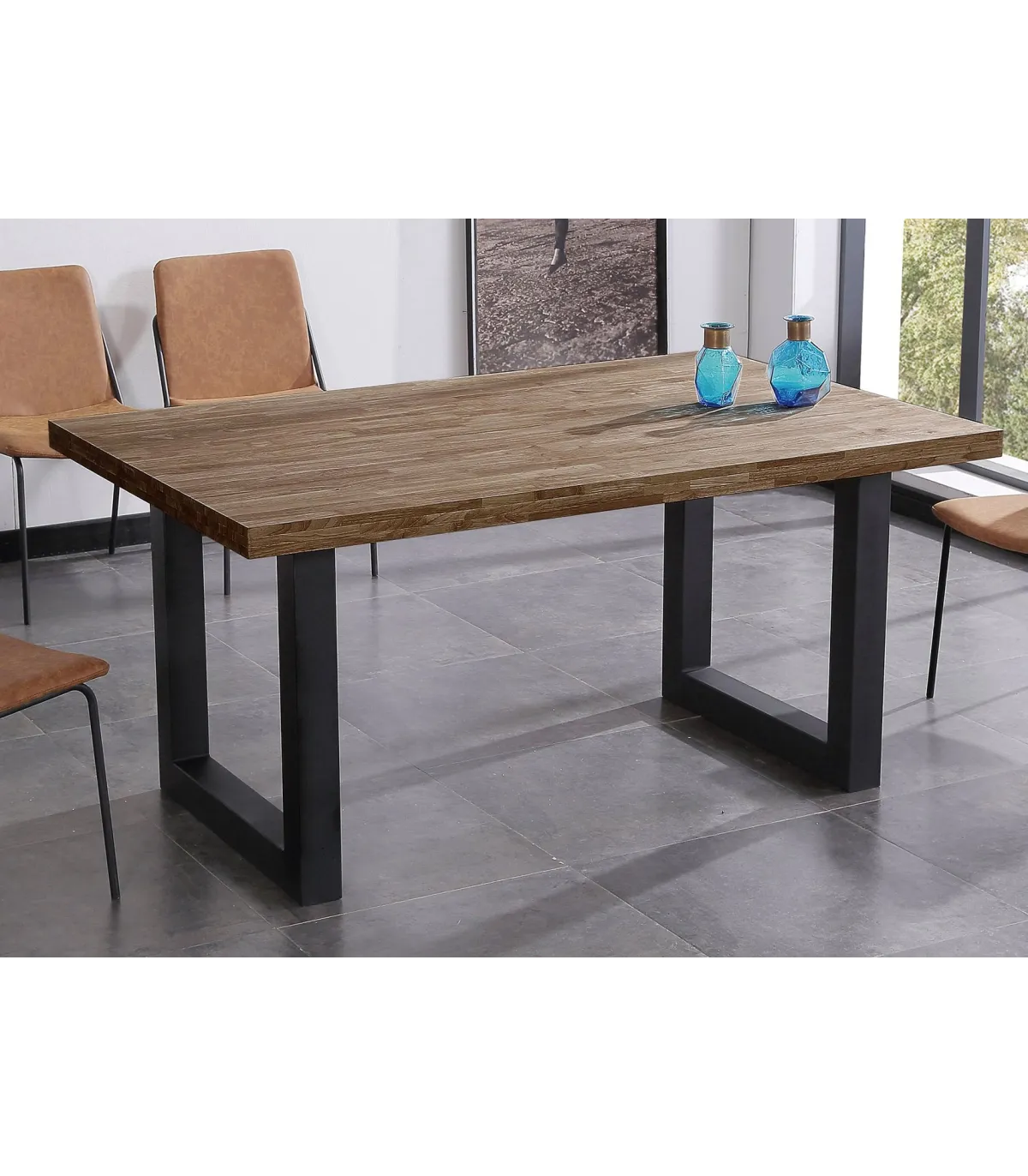 Desfrute de refeições familiares com a elegante mesa de jantar loft: design moderno · Robust American Oak · Acabamento preto.