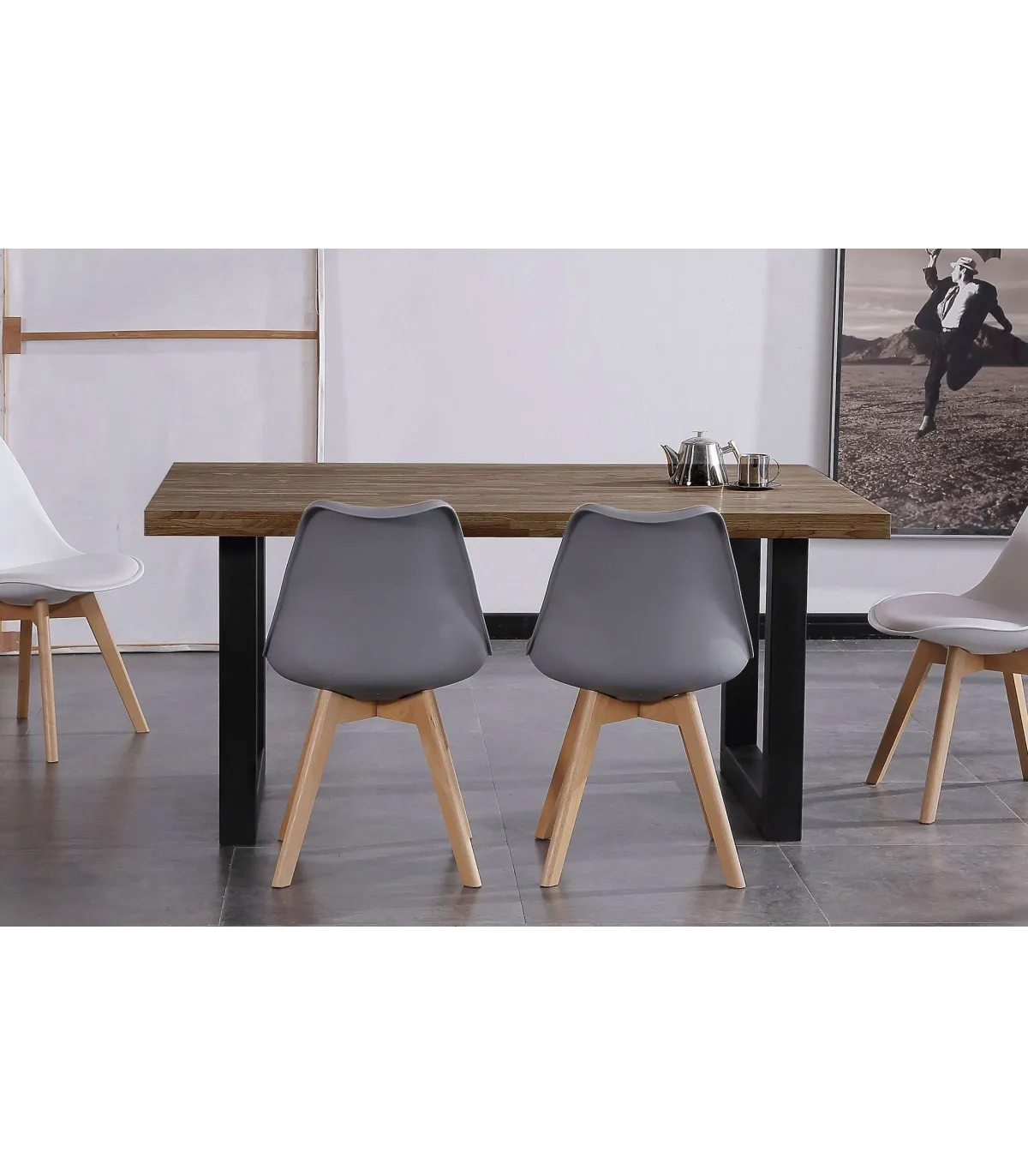 ▪ As pernas de metal preto fornecem um toque de modernidade e sofisticação à mesa. Estas pernas não são apenas elementos visuais deslumbrantes, mas também fornecem a estabilidade e suporte necessários para criar um espaço de jantar seguro e funcional. O contraste entre madeira e metal cria uma estética única que é característica do estilo industrial.