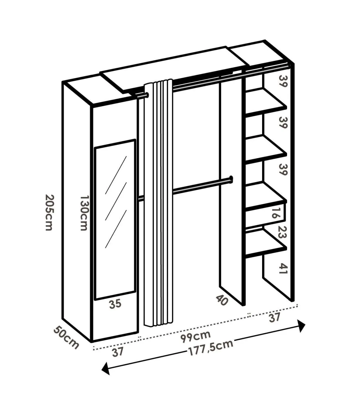 Este guarda-roupa prático tem uma grande capacidade de armazenamento e, você pode manter suas roupas escondidas graças à sua cortina.
