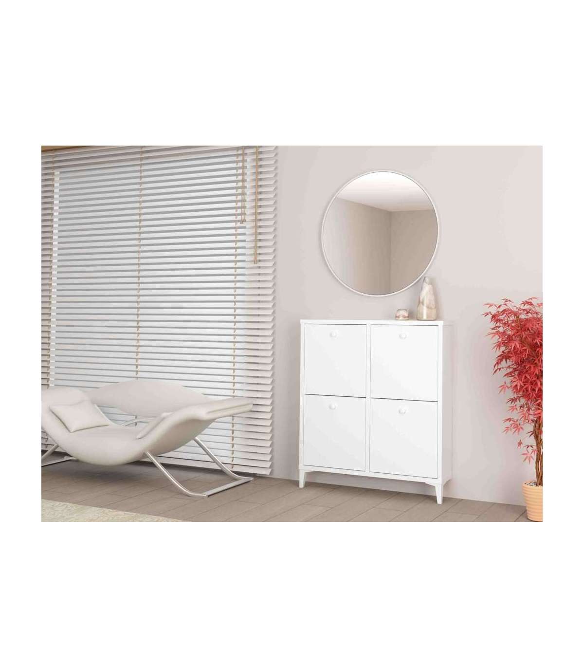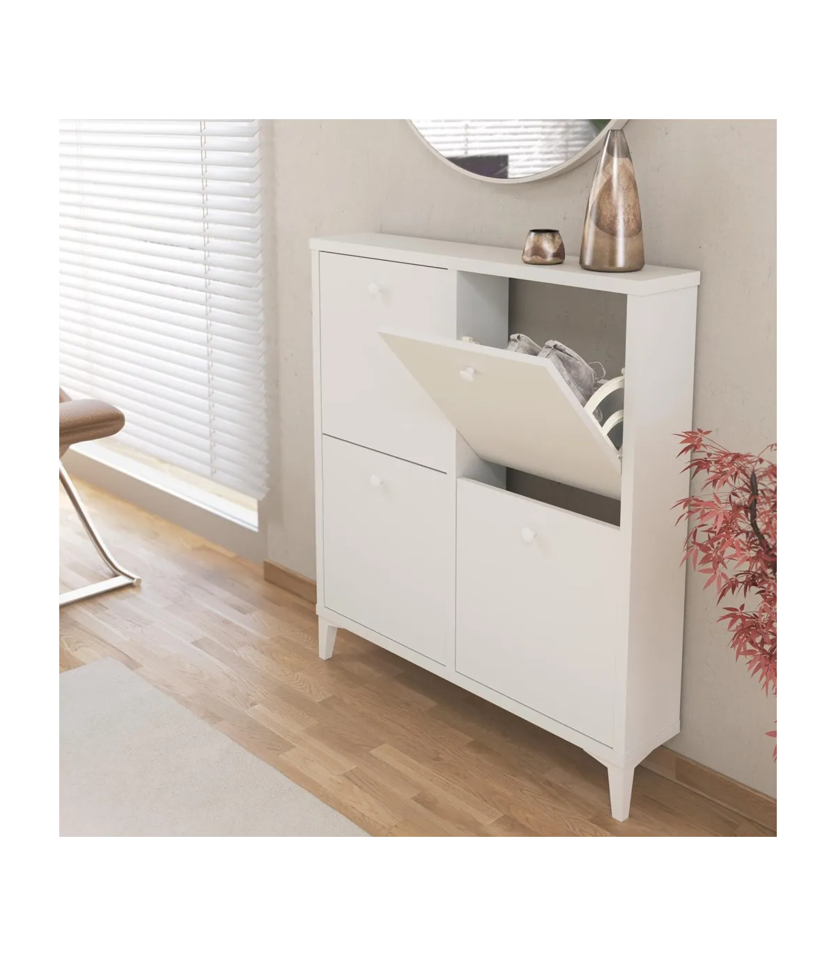 Organize seu calçado com estilo e funcionalidade · 4 trapsons · Moderno design em branco · Dimensões perfeitas para qualquer espaço.